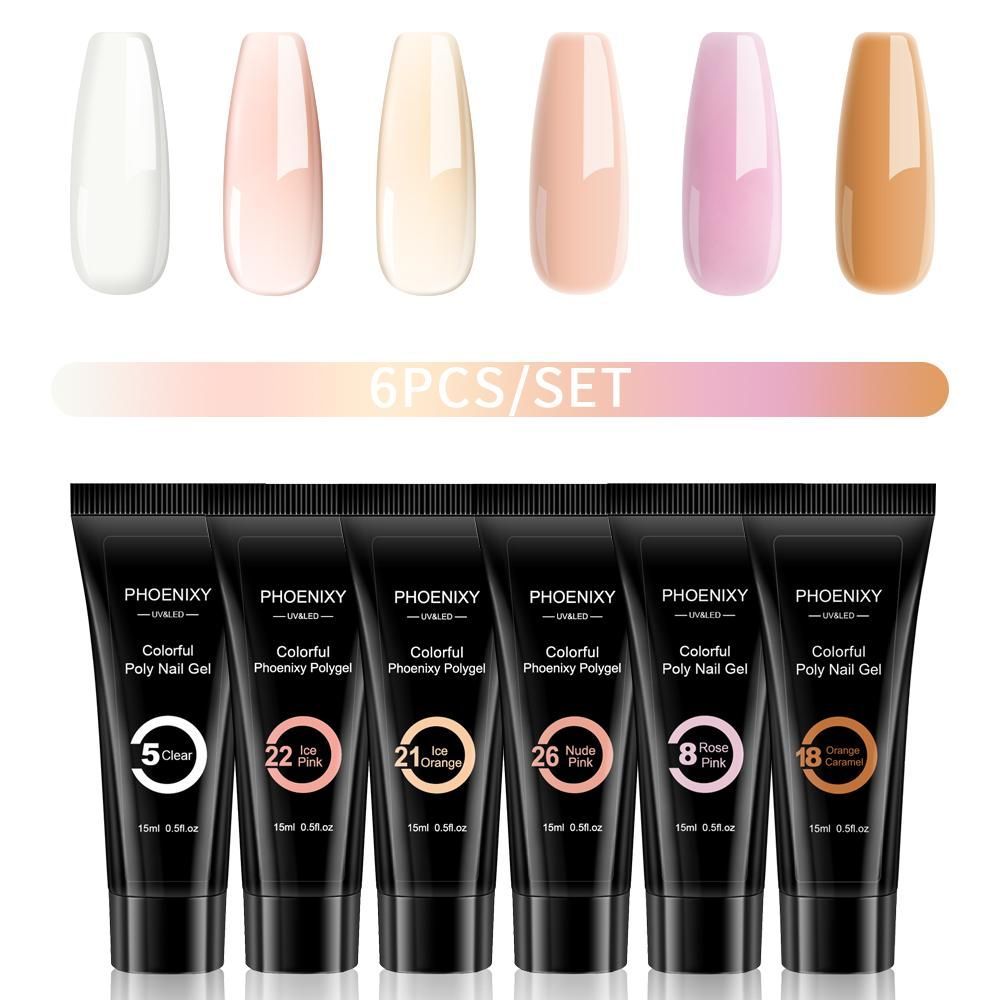 PHOENIXY/Набор для ногтей 6шт Поли Гель для ногтей Набор для расширения Полуперманентный кристалл Гель