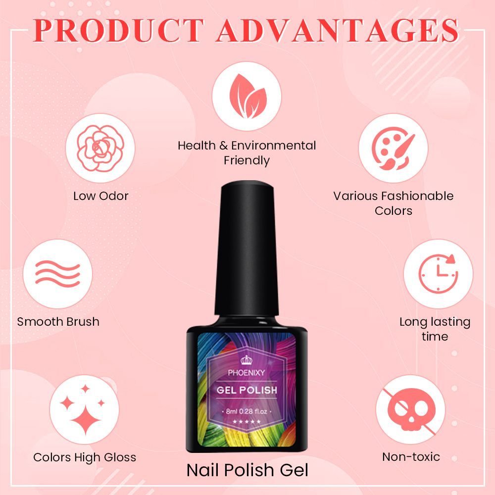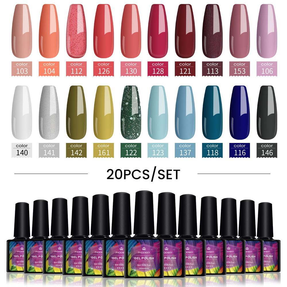 PHOENIXY/Набор гель-лаков для ногтей, 20 штук по 8 мл, полу-перманентный гибридный гель-лак для UV- и светодиодного маникюра