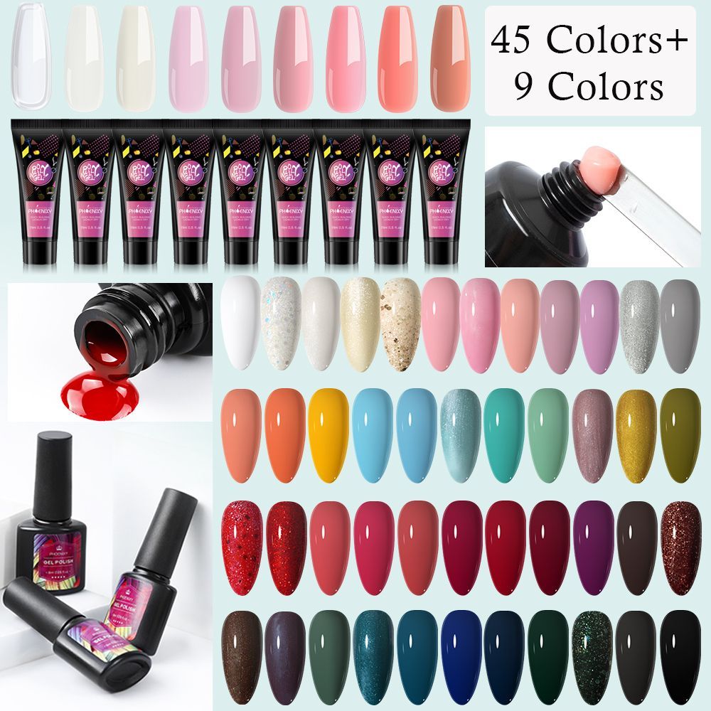 PHOENIXY/Набор гель-лаков для ногтей и наращивания ногтей в 45+9 оттенках: полуперманентное покрытие для нейл-арта.