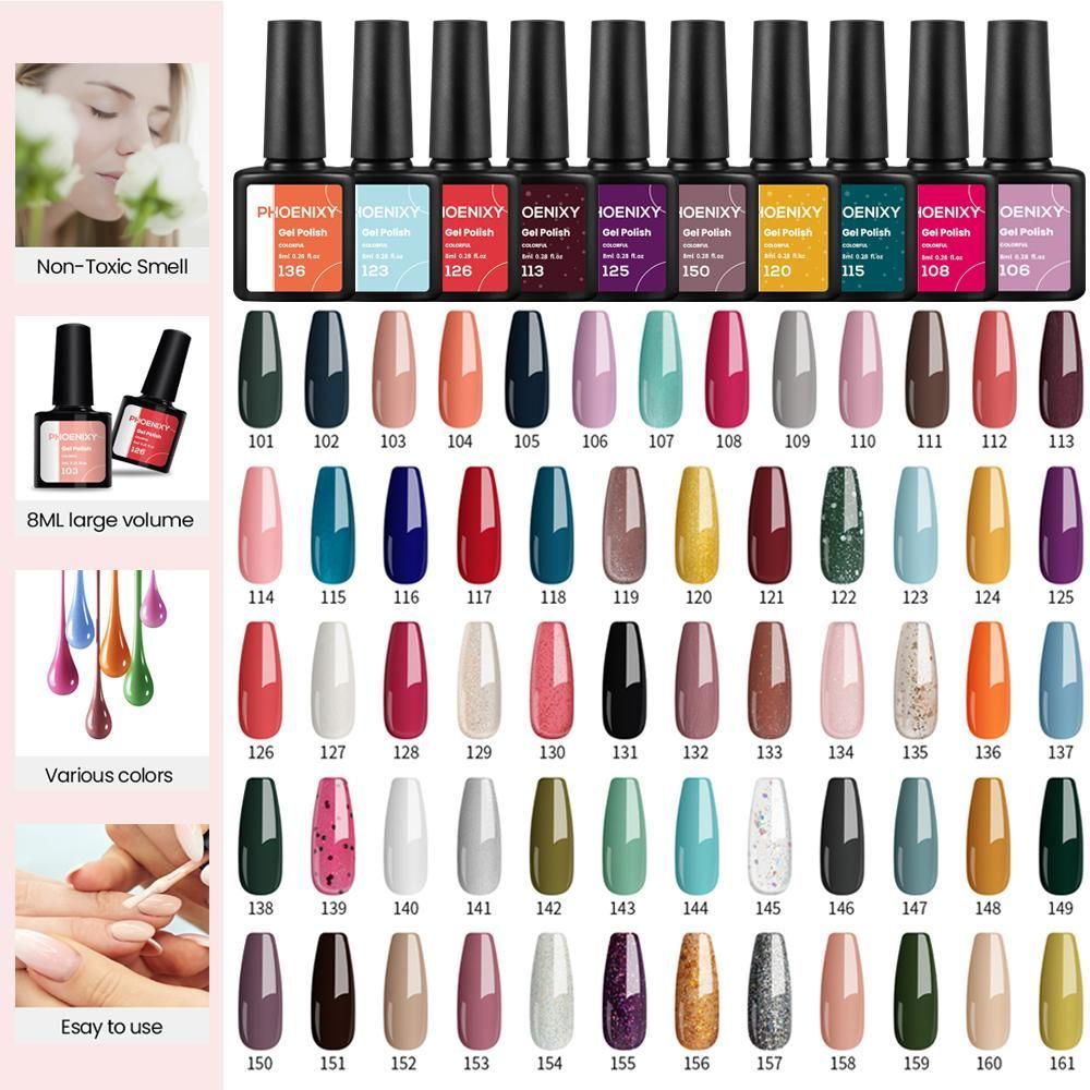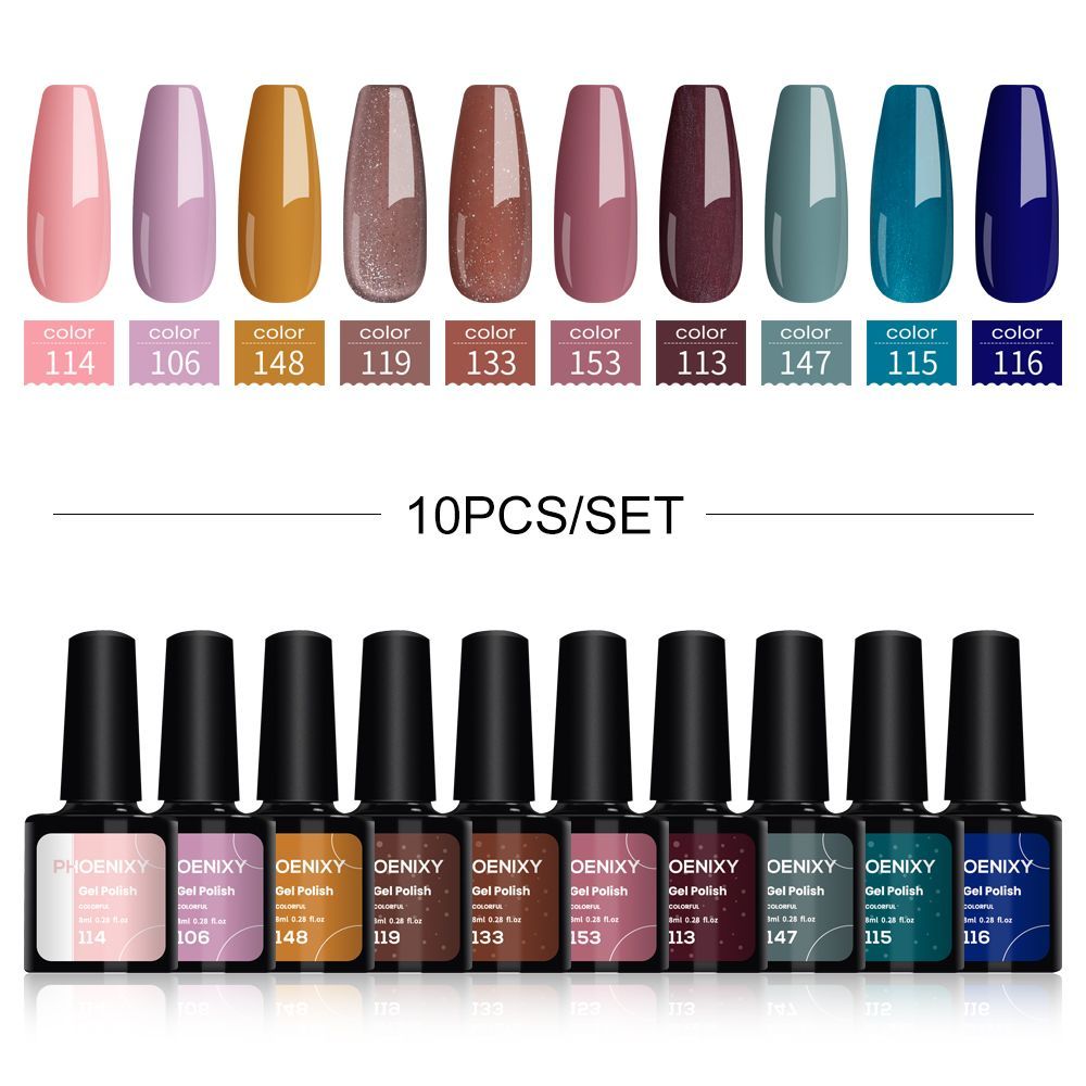 PHOENIXY/Набор гель-лаков для ногтей из 10 цветов гелевая краска и полупостоянный смешанный лак для базового и верхнего нейл-арта