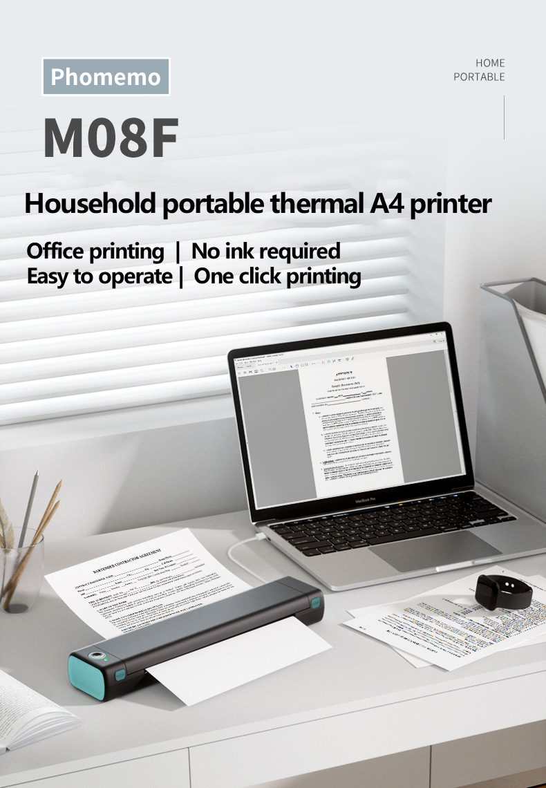 Phomemo M08F Мини-тест на домашнюю работу без чернил офисный портативный термопринтер А4