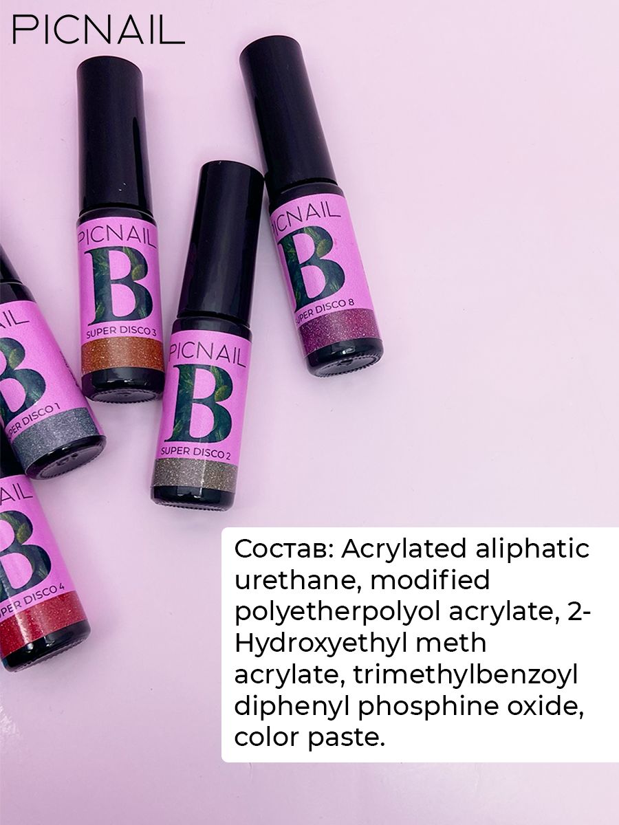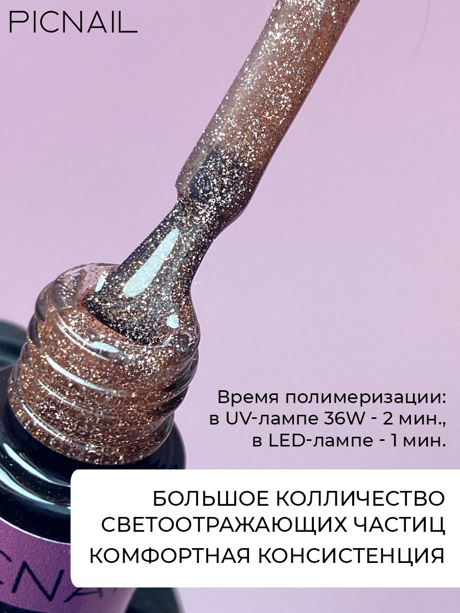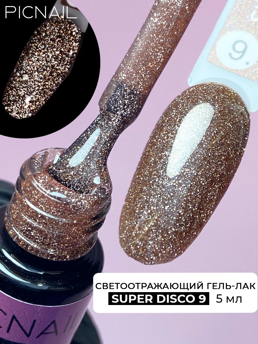 PICNAIL Светоотражающий гель лак с блестками для ногтей Super Disco,5 мл