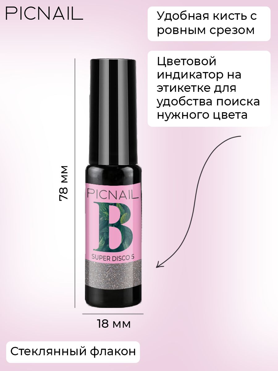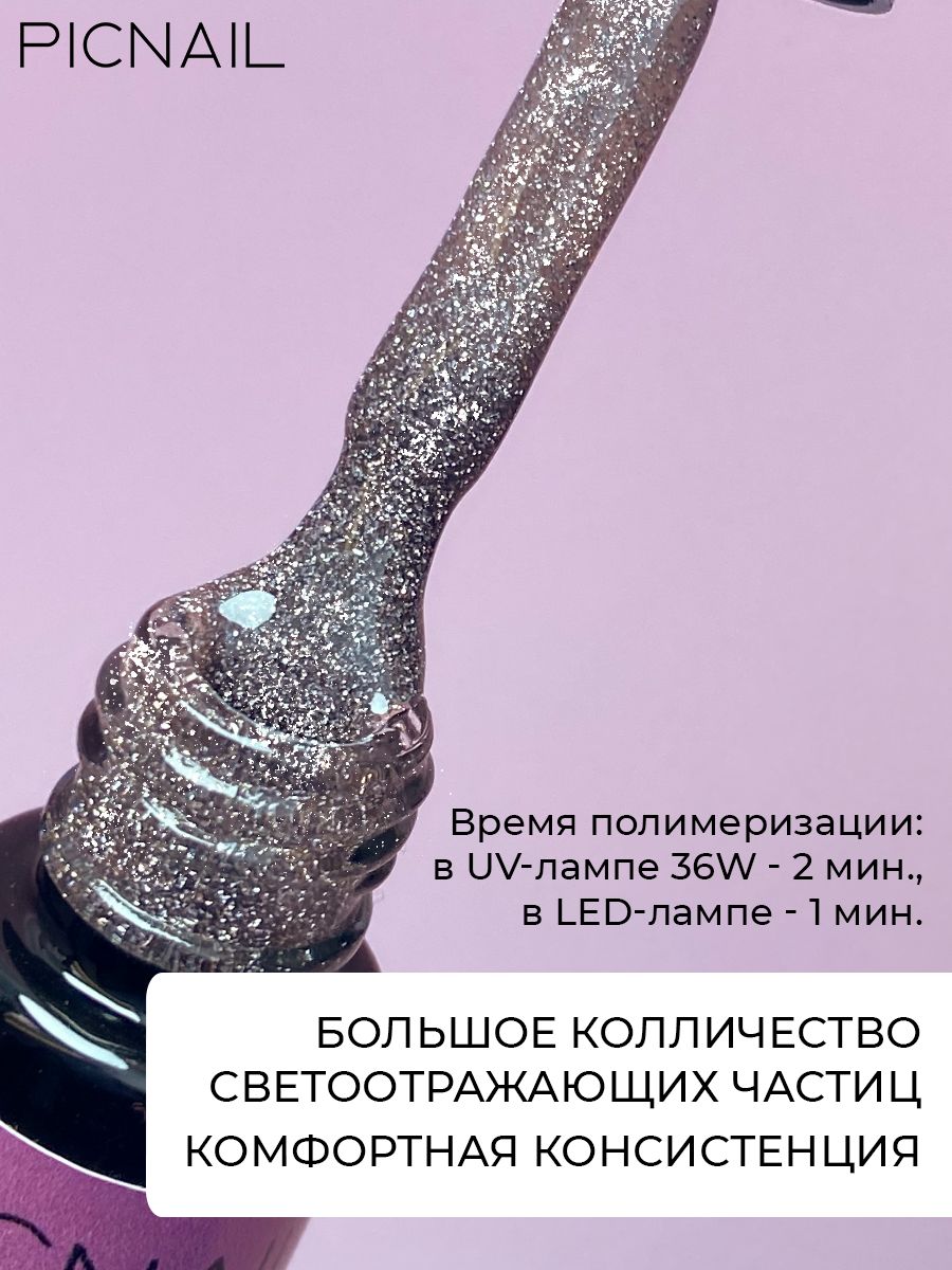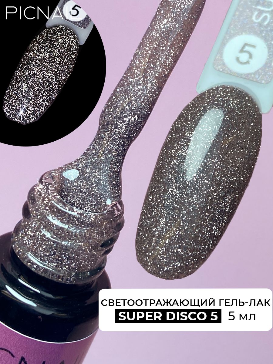 PICNAIL Светоотражающий гель лак с блестками для ногтей Super Disco,5 мл