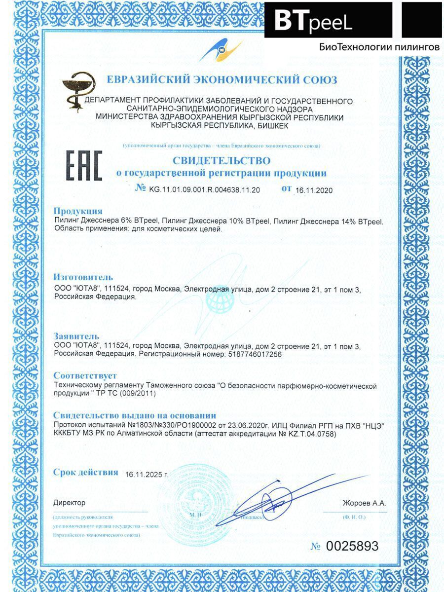 Пилинг Джесснера 6% гелевый, витамин Е, BTpeel, 10 мл.