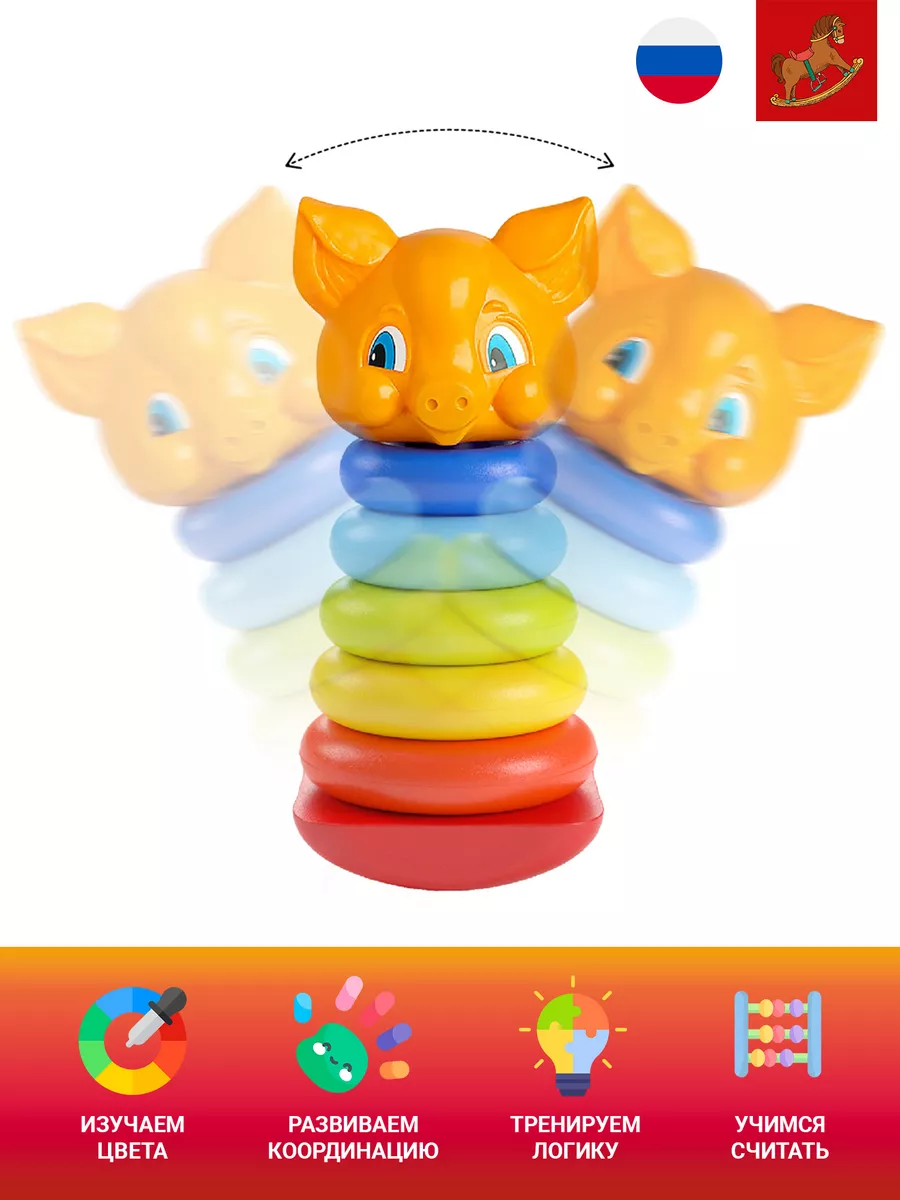 Пирамидка-качалка детская развивающая игрушка Хрюшка