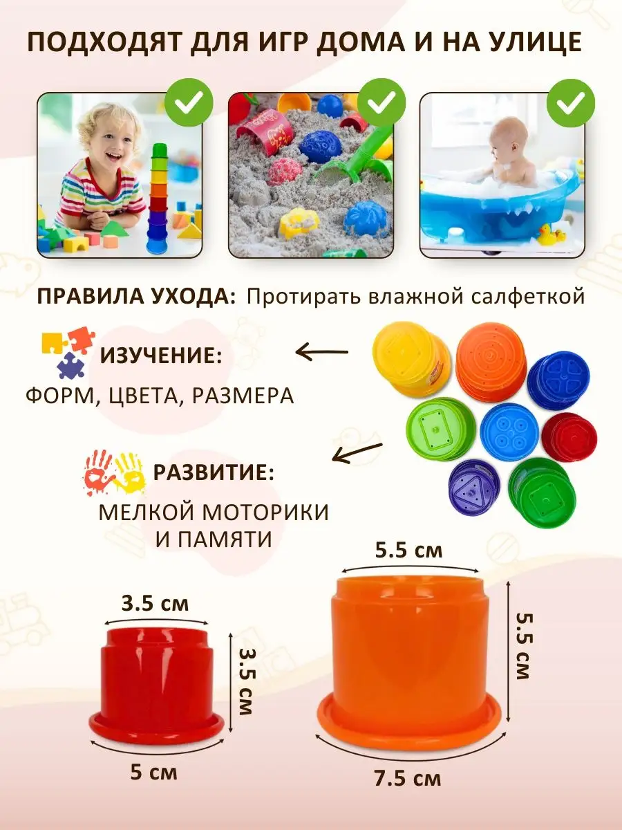 Количество элементов 8 развивающих стаканчиков