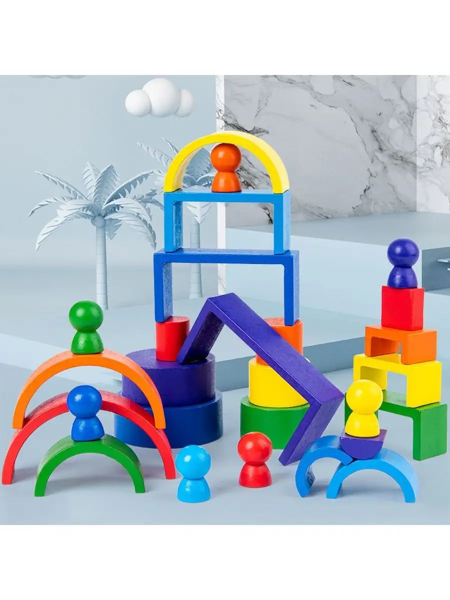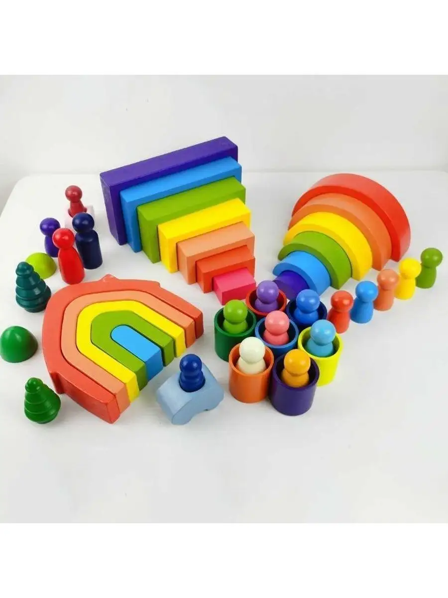 Артикул 145800411 Материал игрушки дерево; строительные блоки из дерева; радужные фигуры