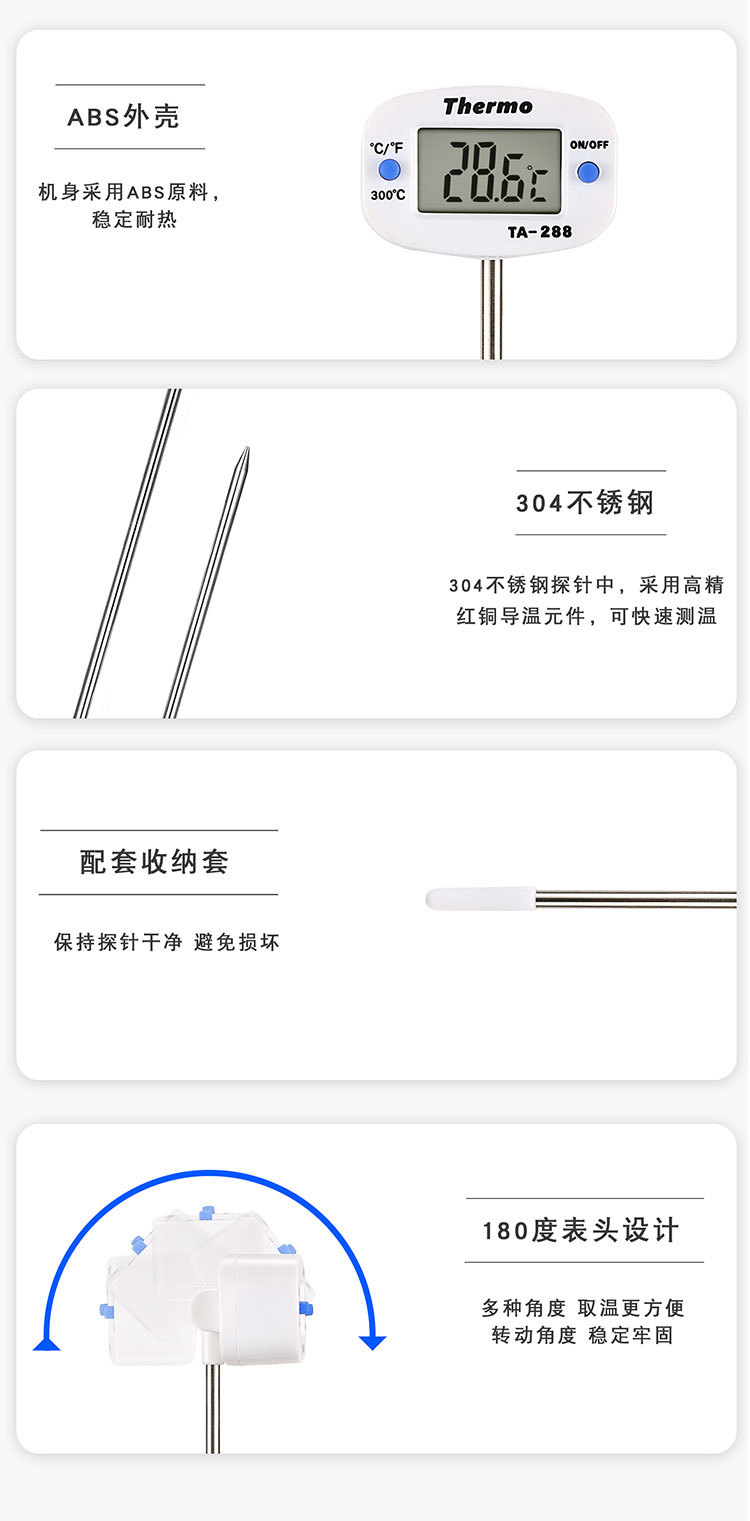 Пищевой термометр TA-288 -50 ℃ ~ 300 ℃ из нержавеющей стали