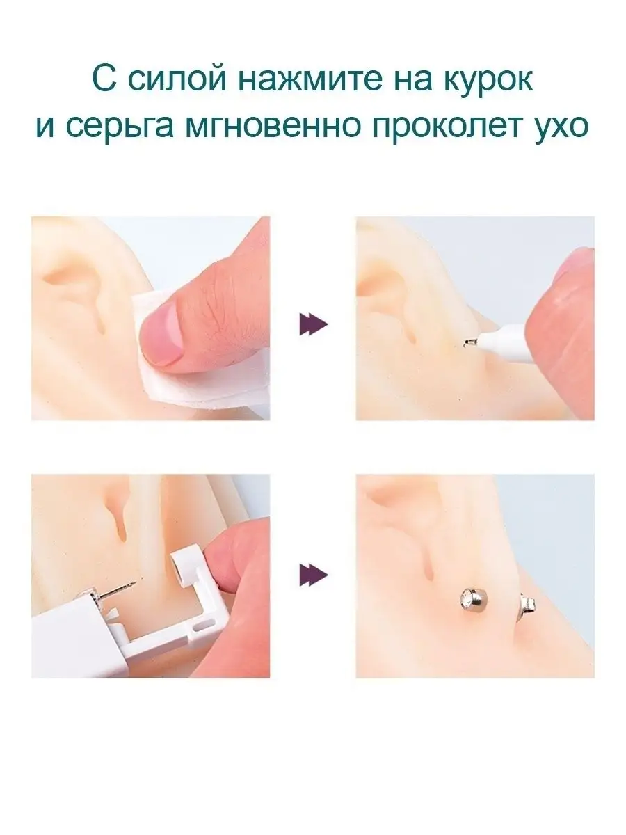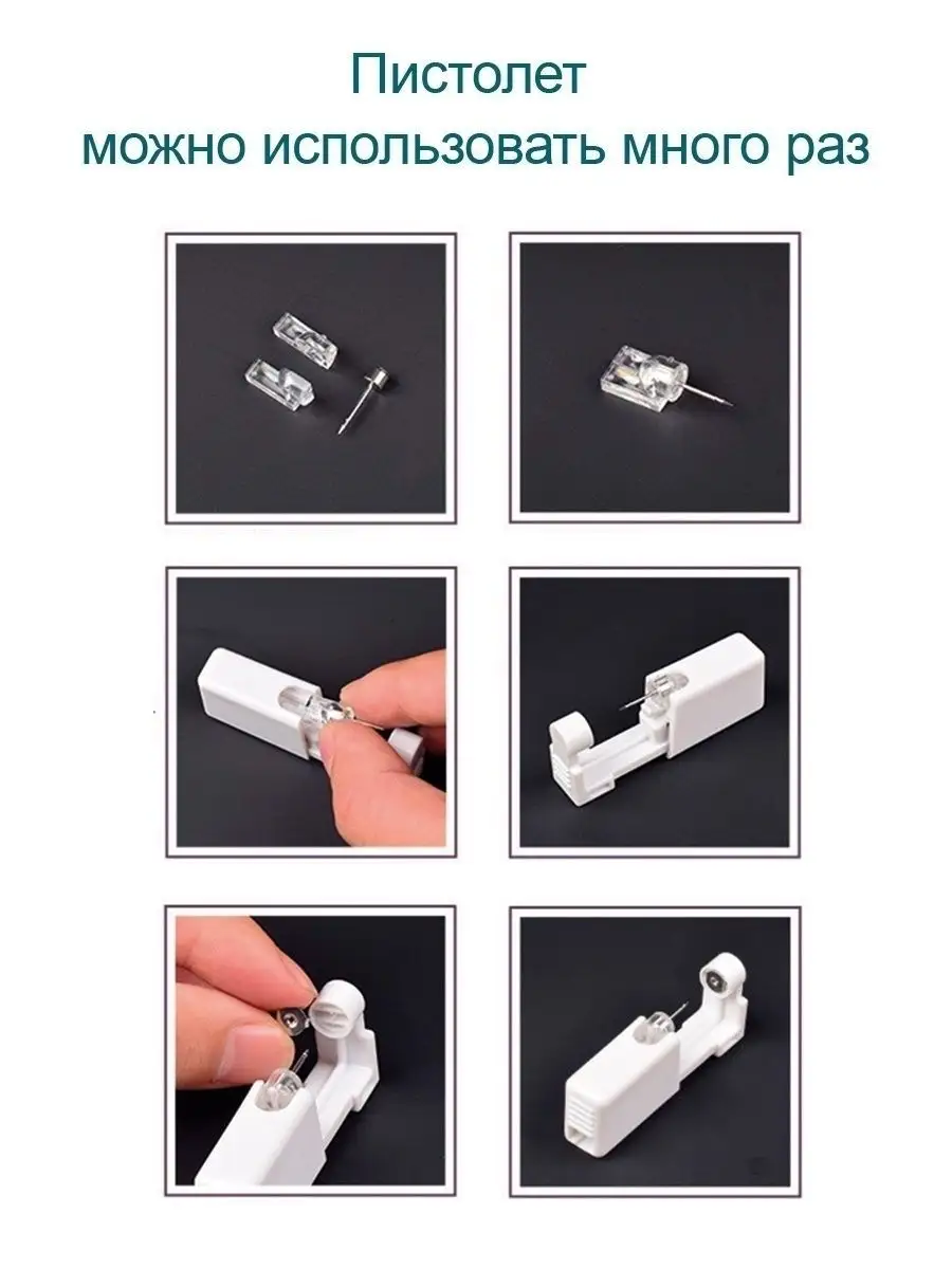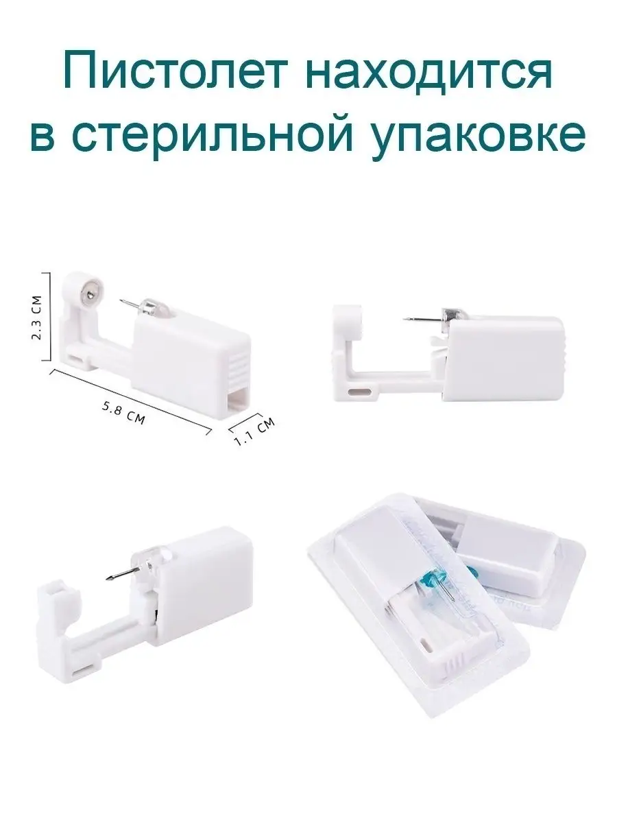 Комплектация серьга - 2 шт; Пистолет для пирсинга - 2 шт; салфетка спиртовая - 2 шт