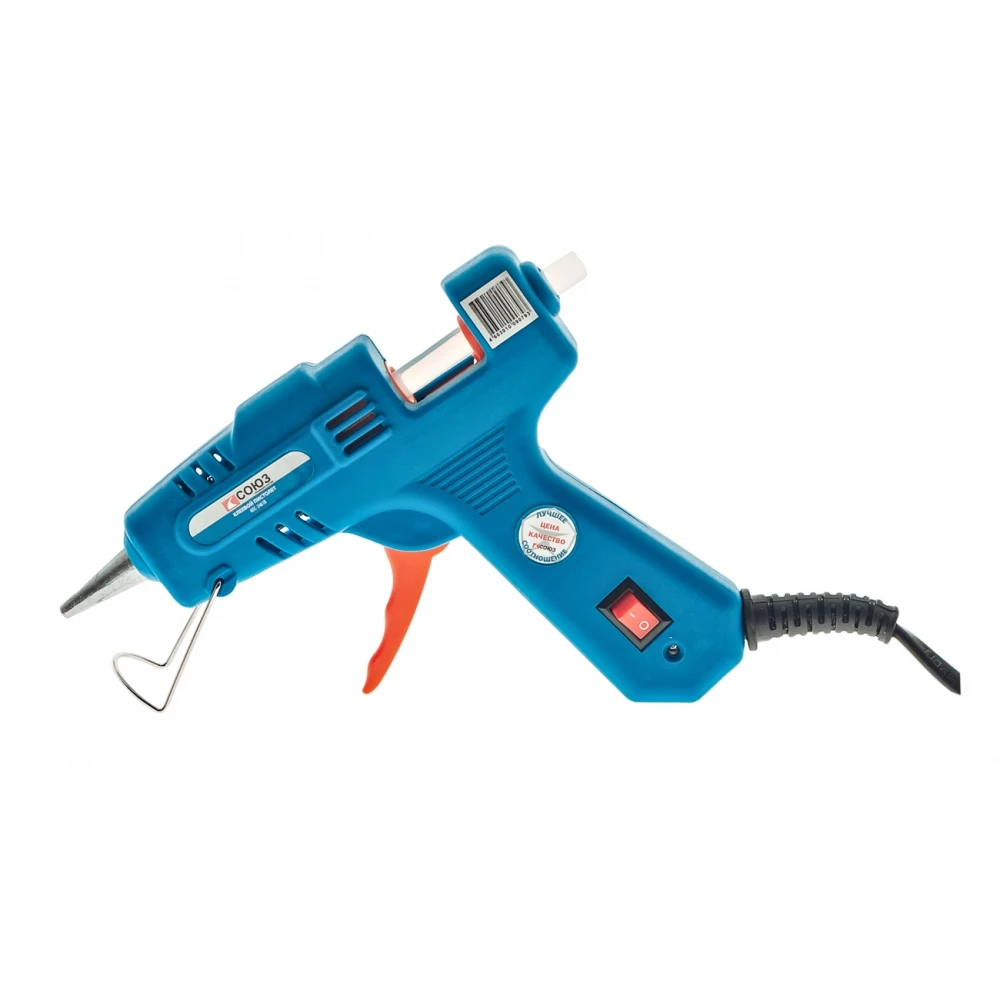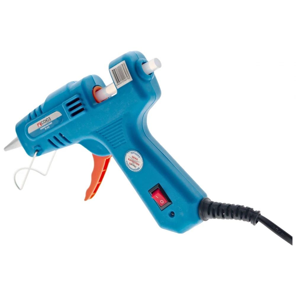 Преимущества товара Компактный дизайн с подставкой, удобный курок и длинное узкое металлическое сопло позволяют с комфортом выполнять самые деликатные работы; Встроенный выключатель избавляет от необходимости выключать клеевой пистолет из розетки на время перерывов в работе; Световой LED индикатор сигнализирует пользоателю о включенном питании.