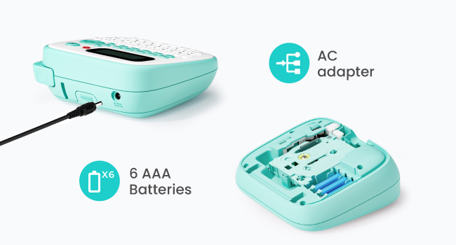 Производитель этикеток E1000 с адаптером переменного тока (в комплекте) или 6 батареями AAA для питания
