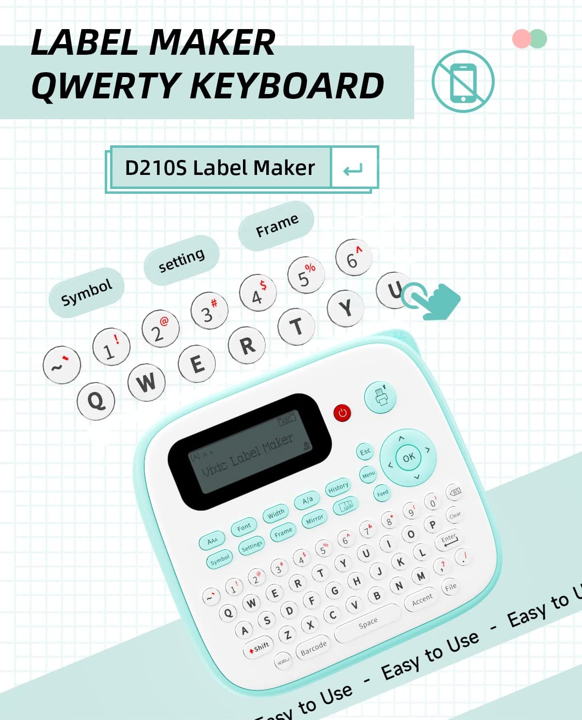 Питьевая этикетка Vixic D210S, принтер для этикеток 12 мм, устройство для наклеек с лентами для этикеток для дома, офиса, школы, клавиатура QWERTY