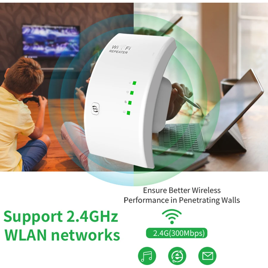 • Поддержка частоты Wi-Fi 2,4G :Работая на частоте Wi-Fi 2,4G, этот ретранслятор обеспечивает совместимость с большинством устройств и маршрутизаторов.