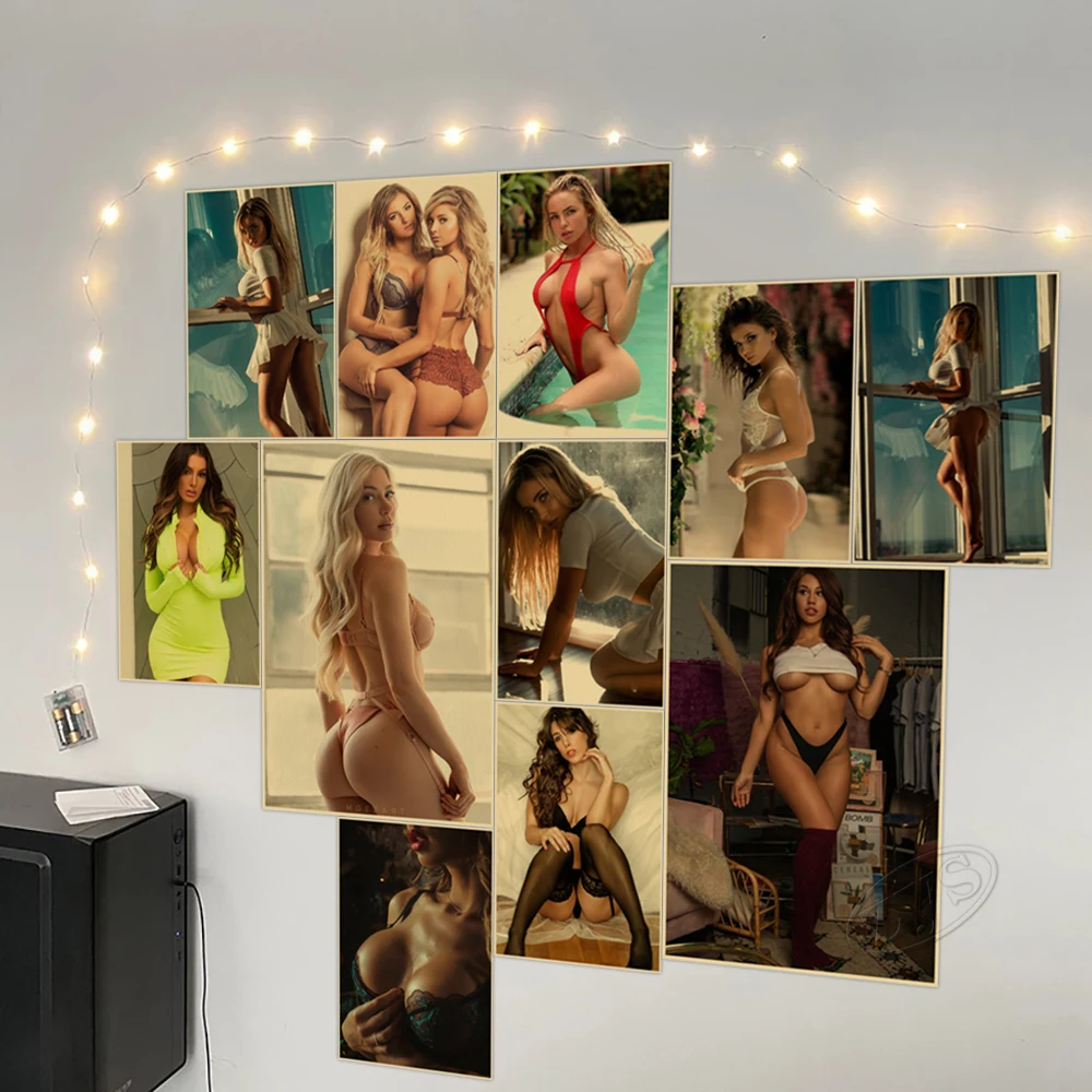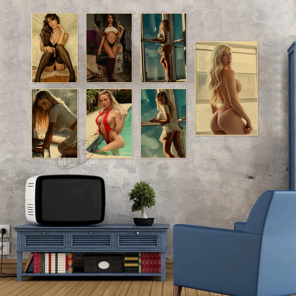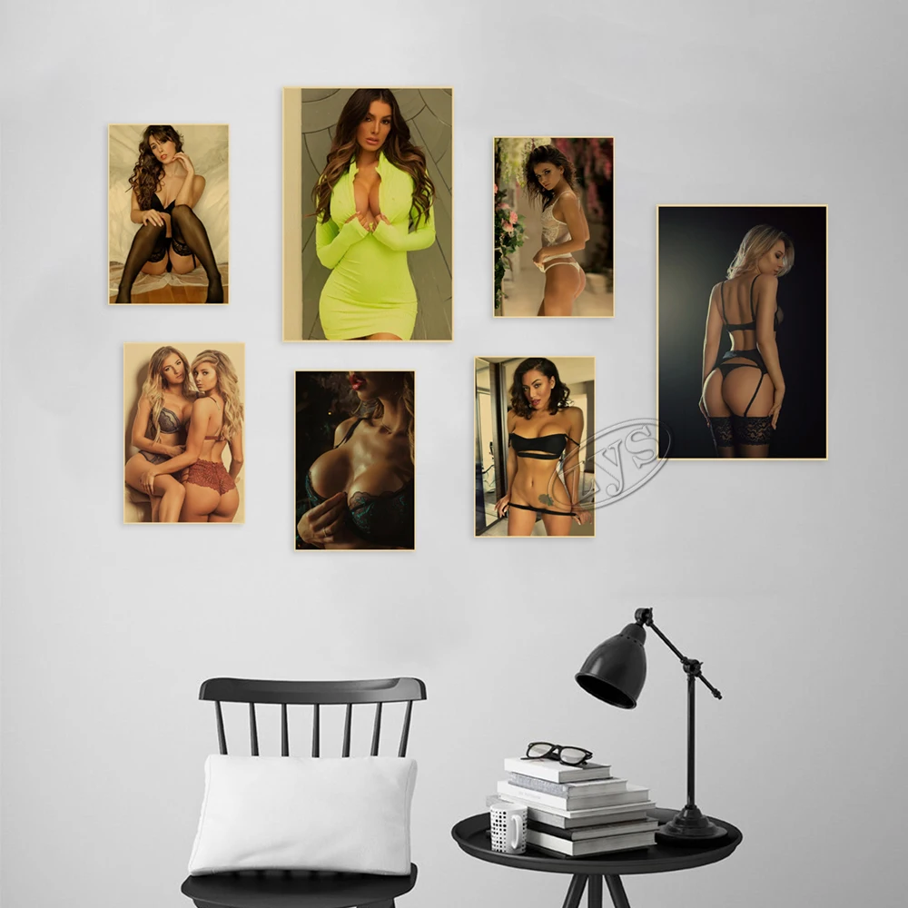 Плакат с изображением привлекательной девушки из крафт-бумаги, картина с минималистским изображением HD, художественное искусство на стену для женщин, картина для дома, спальни, декоративный фон