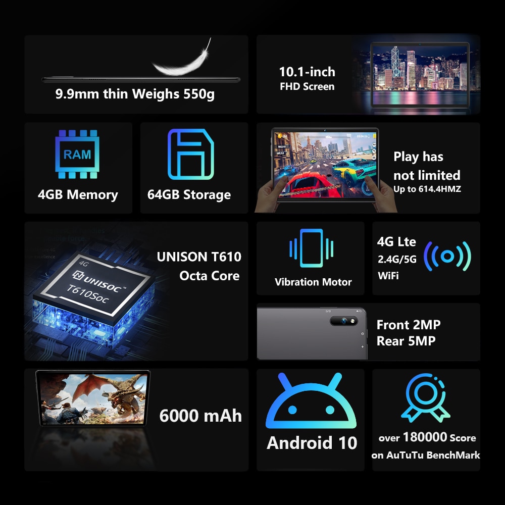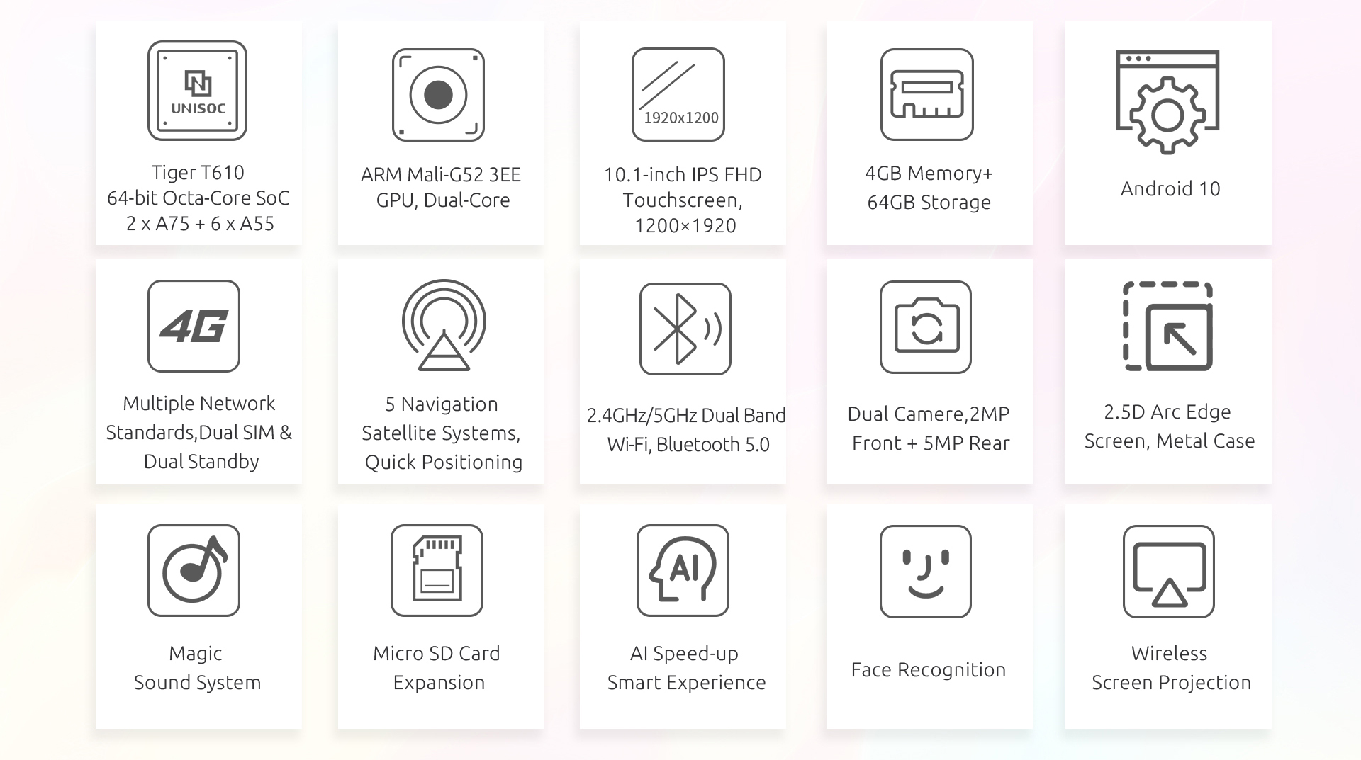 Выставка элегантности, где каждый импульс-чистое волнение. 10,1-дюймовый динамичный, мощный планшет, совместимый с несколькими сетевыми стандартами на базе мобильной платформы UNISOC Tiger T610 4G