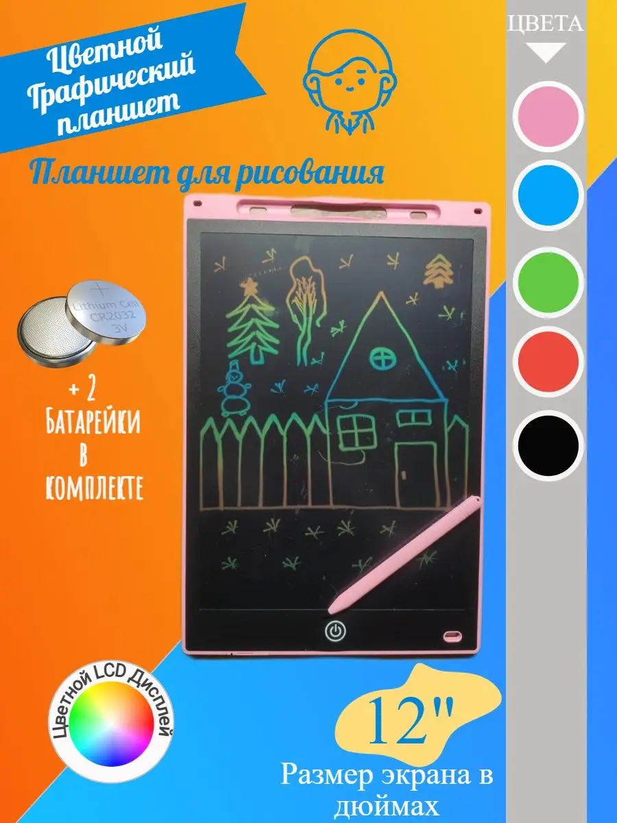 Планшет для рисования графический развивающий цветной