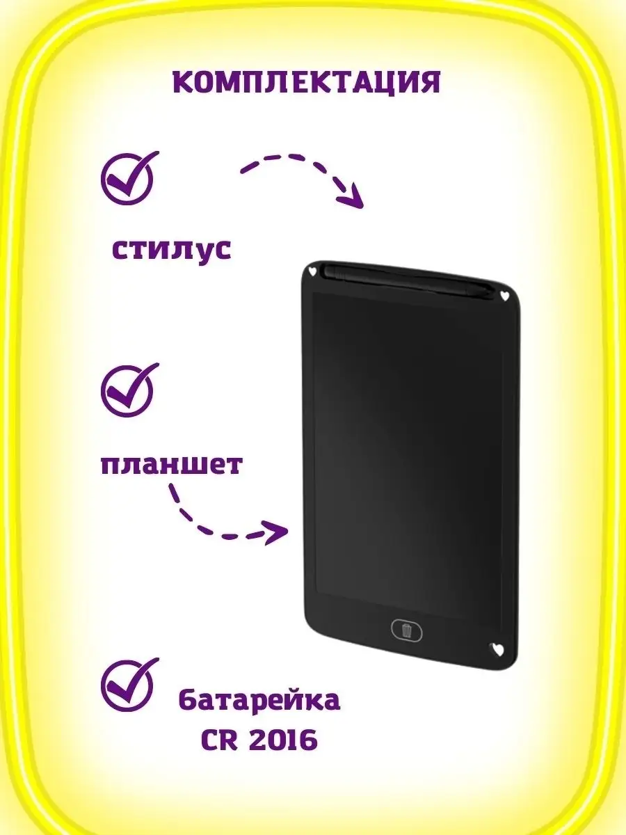 Состав набора планшет-1шт; стилус-1шт,батарейка CR 2016-1шт
