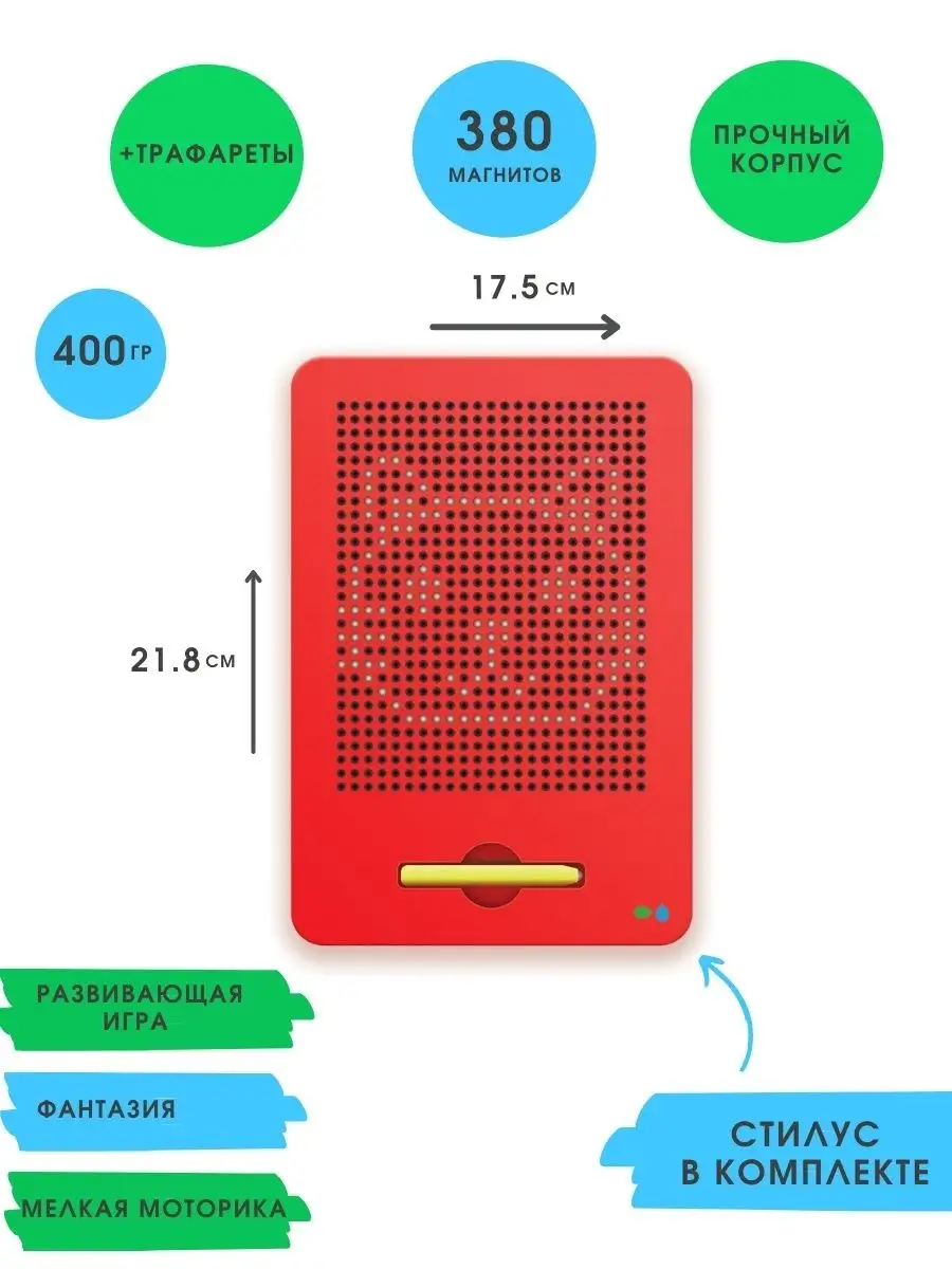 Комплектация магнитный планшет для рисования - 1 шт.; магнитный стилус - 1 шт.; трафареты в наборе - 10 шт.; инструкция