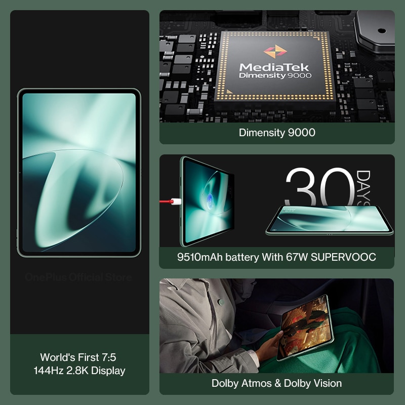 Первый в мире дисплей 7:5 144 Гц 2,8 K | Размеры 9000 | Батарея 9510 мАч с SUPERVOOC 67 Вт | Dolby Atmos и Dolby Vision