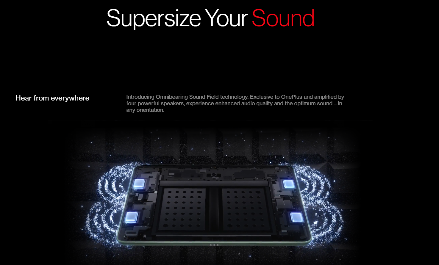 Представляем технологию всенаправляющего звукового поля. Эксклюзивно для OnePlus и усиливается четырьмя мощными динамиками, улучшенное качество звука и оптимальный звук-в любой ориентации.