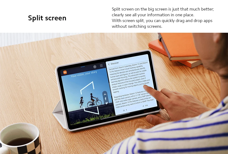 Это означает, что вы можете установить Redmi Pad вниз и свободно перемещаться, не беспокоясь о том, что другая сторона потеряет вас из виду. Сосредоточенная ультра-широкая фронтальная камера 105 ° Разделенный экран