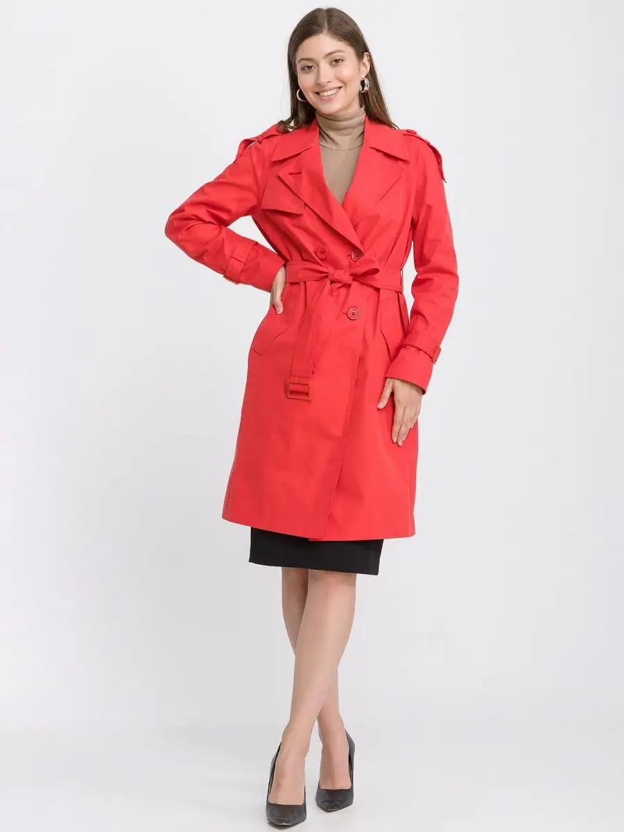 Описание: Трендовая демисезонная одежда для женщин и будущих мам. Свободный покрой классического тренча с поясом легко сочетается как с классической так и спортивной одеждой и обувью. Удобный, комфортный, не стесняющий движения плащ, защитит от непогоды. Тренч выполнен из качественной, плотной, добротной и приятной на ощупь плащевой ткани. Отличный вариант для весенней или осенней прогулки. Двубортный плащ на весну имеет прорезные карманы. Пуговицы в тон, погоны, кокетка, манжеты и отложной воротник делают из тренчкота универсальную вещь, которая придется по вкусу каждой девушке. Базовая верхняя одежда для весны и осени. Ткань водоотталкивающая и ветрозащитная, что в любую погоду поможет чувствовать себя комфортно. Комплектуется вешалкой и запаянным пакетом во всю длину. За счет добавления полиэстера плащ меньше мнется и менее подвержен загрязнению в отличии от 100% хлопковых моделей.