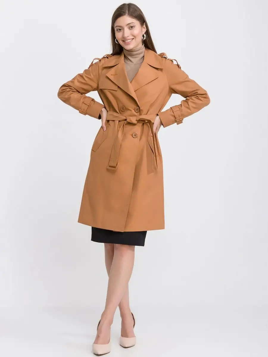 Описание: Трендовая демисезонная одежда для женщин и будущих мам. Свободный покрой классического тренча с поясом легко сочетается как с классической так и спортивной одеждой и обувью. Удобный, комфортный, не стесняющий движения плащ, защитит от непогоды. Тренч выполнен из качественной, плотной, добротной и приятной на ощупь плащевой ткани. Отличный вариант для весенней или осенней прогулки. Двубортный плащ на весну имеет прорезные карманы. Пуговицы в тон, погоны, кокетка, манжеты и отложной воротник делают из тренчкота универсальную вещь, которая придется по вкусу каждой девушке. Базовая верхняя одежда для весны и осени. Ткань водоотталкивающая и ветрозащитная, что в любую погоду поможет чувствовать себя комфортно. Комплектуется вешалкой и запаянным пакетом во всю длину. За счет добавления полиэстера плащ меньше мнется и менее подвержен загрязнению в отличии от 100% хлопковых моделей.