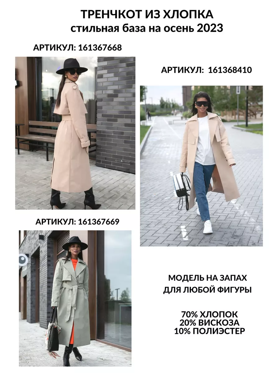 Описание: БОЛЬШЕМЕРИТ НА РАЗМЕР. Если вы хотите вещь оверсайз - заказывайте свой размер. А также, если к вам пришел плащ с браком или у плаща отсутствует пояс, пожалуйста, скажите сотруднику, что это брак. Так вы поможете нам бороться с недобросовестными покупателями и снизите риск того, что вам придет вещь с браком. Рекомендуем заказать плащ снова после того, как вы сдали предыдущий с пометкой "брак", вам приедет новый плащ. Ситуации с браком носят единичный характер, мы активно боремся с такими недобросовестными действиями других покупателей. Ищете стильную верхнюю одежду на весну лето 2023, которая будет одновременно красиво сочетаться и с деловым костюмом и прекрасно подойдет для повседневной носки? Тогда обратите внимание на новинки нашего бренда – плащ женский, который не оставит вас равнодушной. Длинный плащ тренчкот - настоящая находка для девушек и женщин, которые следят за модой и хотят выглядеть современно и стильно. Шикарный женский плащ от CITY BRAND очень популярен и универсален, Вы можете носить его не только на работу или «на выход», но и на прогулку на природе. Этот классический демисезонный тренч - отличный выбор для тех, кто ищет оригинальный и необычный предмет гардероба на сезон весна-осень. Элегантный двубортный женский плащ летний с боковыми карманами украсит любой образ и защитит от дождя и ветра. Трендовая модель пальто представлена в цветах: светло бежевый (молочный), бежевый, оливковый (хаки). Базовый весенний плащ вытягивает силуэт, стройнит, поэтому идеально подойдёт как для девушек высокого роста, так и невысоких. Он прекрасно сочетается с пиджаком жакетом или костюмом в офис и станет отличным дополнением для вашего нарядного образа. Стильный плащ тренч оверсайз прекрасно подойдет Вам на каждый день. Плащи и тренчкоты CITY BRAND – модные базовые женские вещи сезона весна осень в стиле Casual, замечательно смотрятся как в классическом сочетании с юбкой и рубашкой, как вечерняя одежда с платьем или брюками, так и на каждый день с джинсами и кофтой. Дополнит спортивный образ. Их могут носить молодые девушки и взрослые женщины. Отлично подойдет для девочек подростков в школу. Весенний плащ подойдёт беременным женщинам, а кормящим мамам будет удобно быстро покормить грудного ребёнка на прогулке.