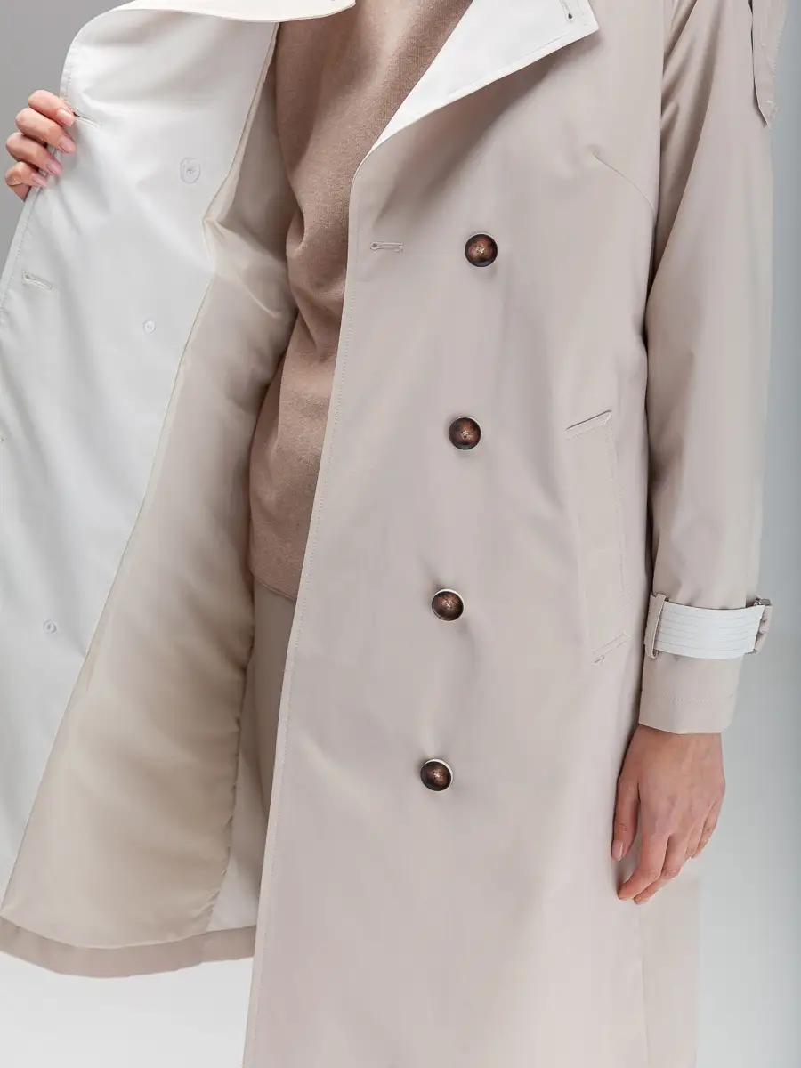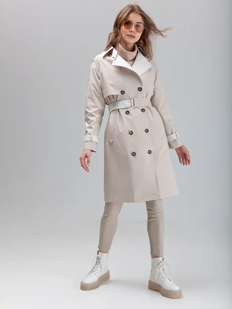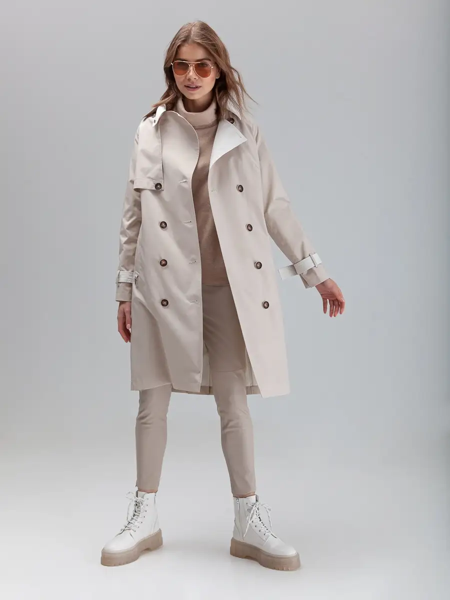 Описание: Женский тренч- тренд сезона! Легкий, двубортный плащ с классическим отложным воротником, отлетной кокеткой сзади и на груди.У тренча два ряда пуговиц, широкий воротник и стильные ремни на манжетах, которые добавят твоему образу деталей. Классический плащ выполнен из высококачественной люксовой плащевой ткани на подкладке. Ткань водоотталкивающая и ветрозащитная.Демисезонный плащлегко комбинировать с любыми предметами гардероба для создания Casual и Smart Casual образа.Соответствует таблице размеров.