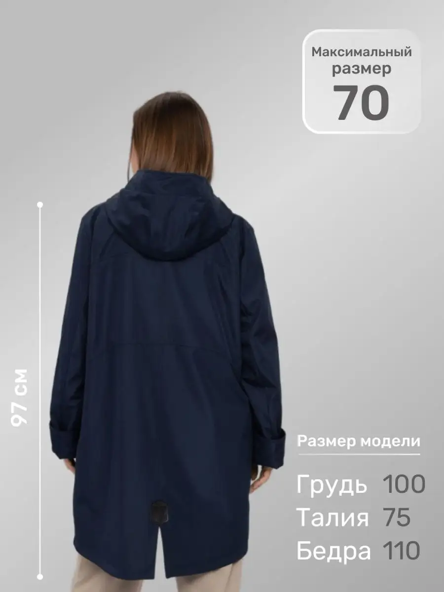 Описание: Плащ женский демисезонный на молнии, длинные рукава. Куртка осенняя женская от непогоды защитит удобный капюшон без опушки и дышащая ткань с гладким рисунком. Подойдет для офиса, прогулок, можно использовать как повседневную одежду для взрослых и молодых женщин, идеально для беременных, так как фасон оверсайз. Демисезонная куртка женская ниже колена сочетается с классическим и спортивным стилем, хорошо смотреться на высоких и на невысоких женщинах. Большие размеры до 72. Рассчитан на температуру до +15С градусов. Утеплителя нет, изделие водоотталкивающее, не промокает под дождем, сохраняет характеристики более 10 лет. Длина изделия 97 см. Рекомендуем бережную стирку. Рост девушки на фотографии 170. Аналог женская одежда турция большие размеры