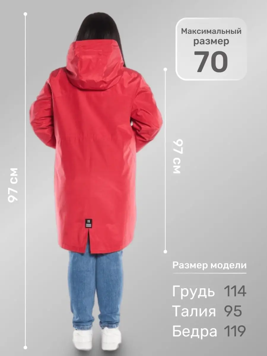 Описание: Плащ женский демисезонный на молнии, длинные рукава. Куртка осенняя женская от непогоды защитит удобный капюшон без опушки и дышащая ткань с гладким рисунком. Подойдет для офиса, прогулок, можно использовать как повседневную одежду для взрослых и молодых женщин, идеально для беременных, так как фасон оверсайз. Демисезонная куртка женская ниже колена сочетается с классическим и спортивным стилем, хорошо смотреться на высоких и на невысоких женщинах. Большие размеры до 72. Рассчитан на температуру до +15С градусов. Утеплителя нет, изделие водоотталкивающее, не промокает под дождем, сохраняет характеристики более 10 лет. Длина изделия 97 см. Рекомендуем бережную стирку. Рост девушки на фотографии 170. Аналог женская одежда турция большие размеры