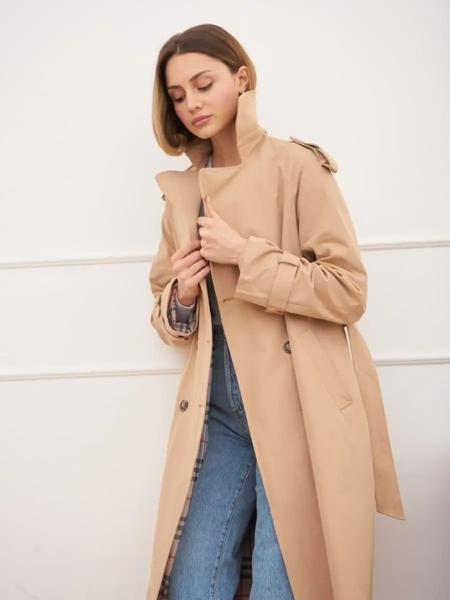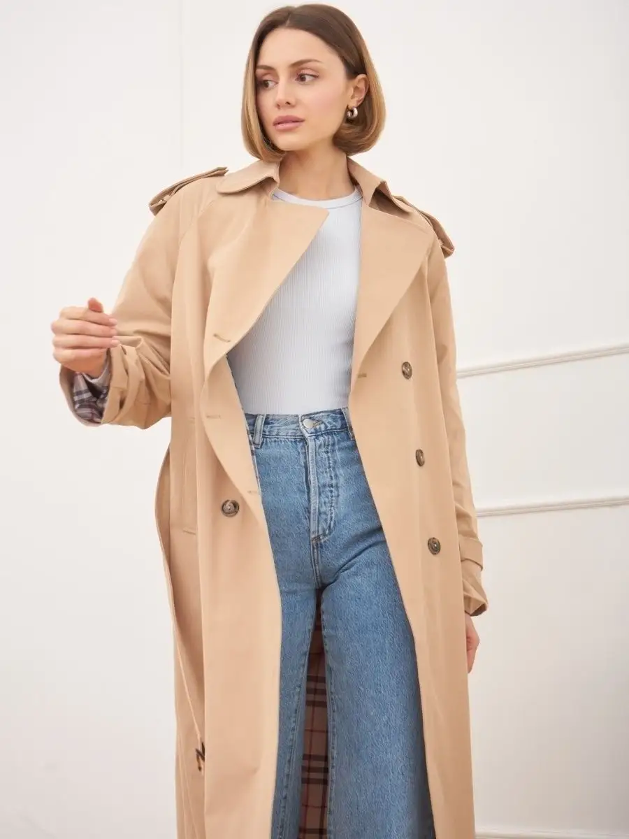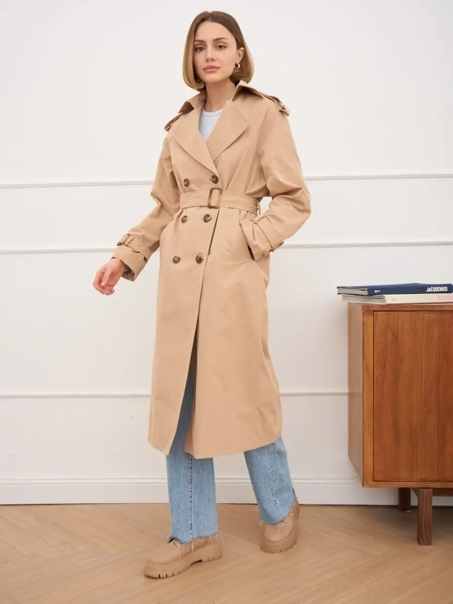 Плащ стильный весна длинный тренчкот демисезонный