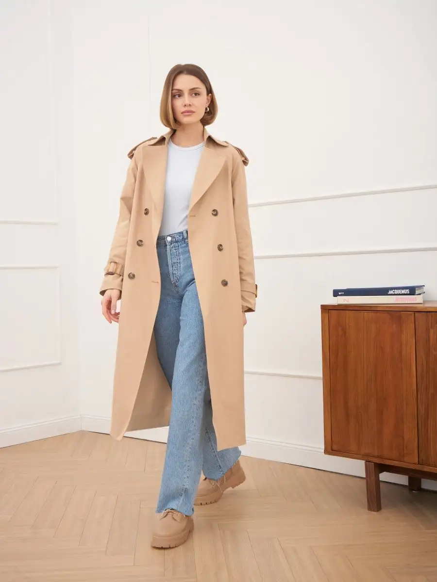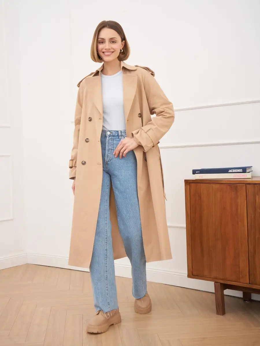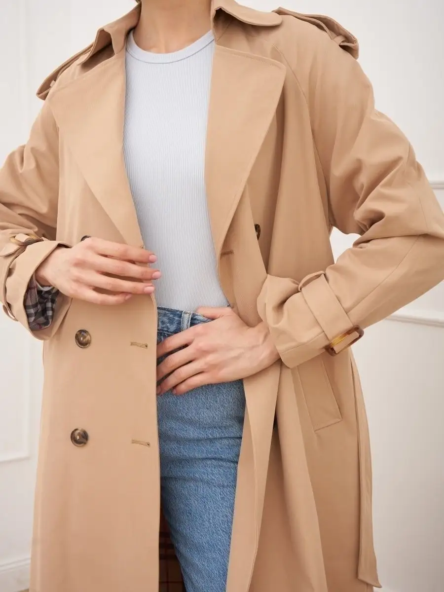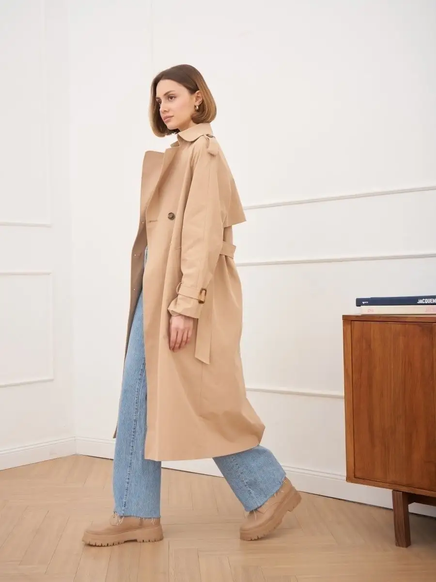 Плащ стильный весна длинный тренчкот демисезонный