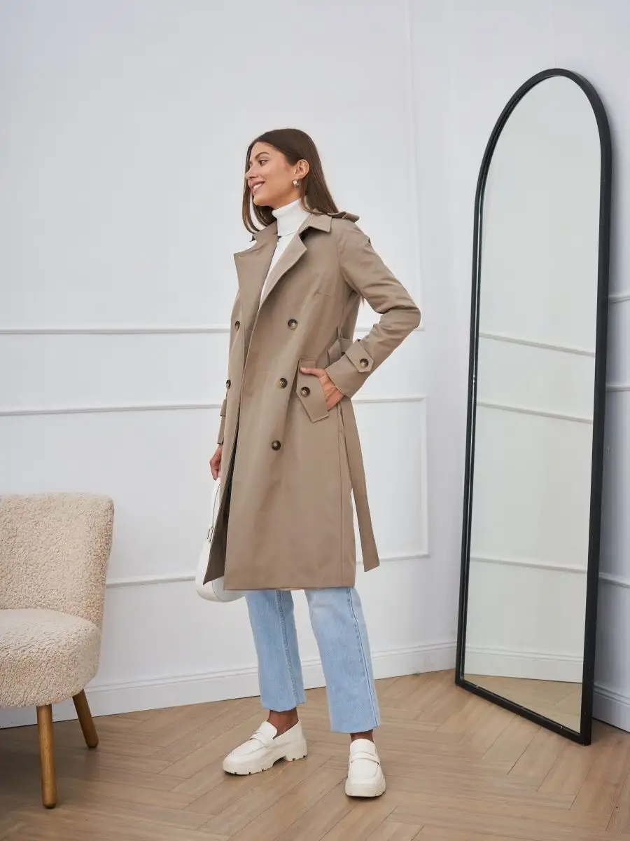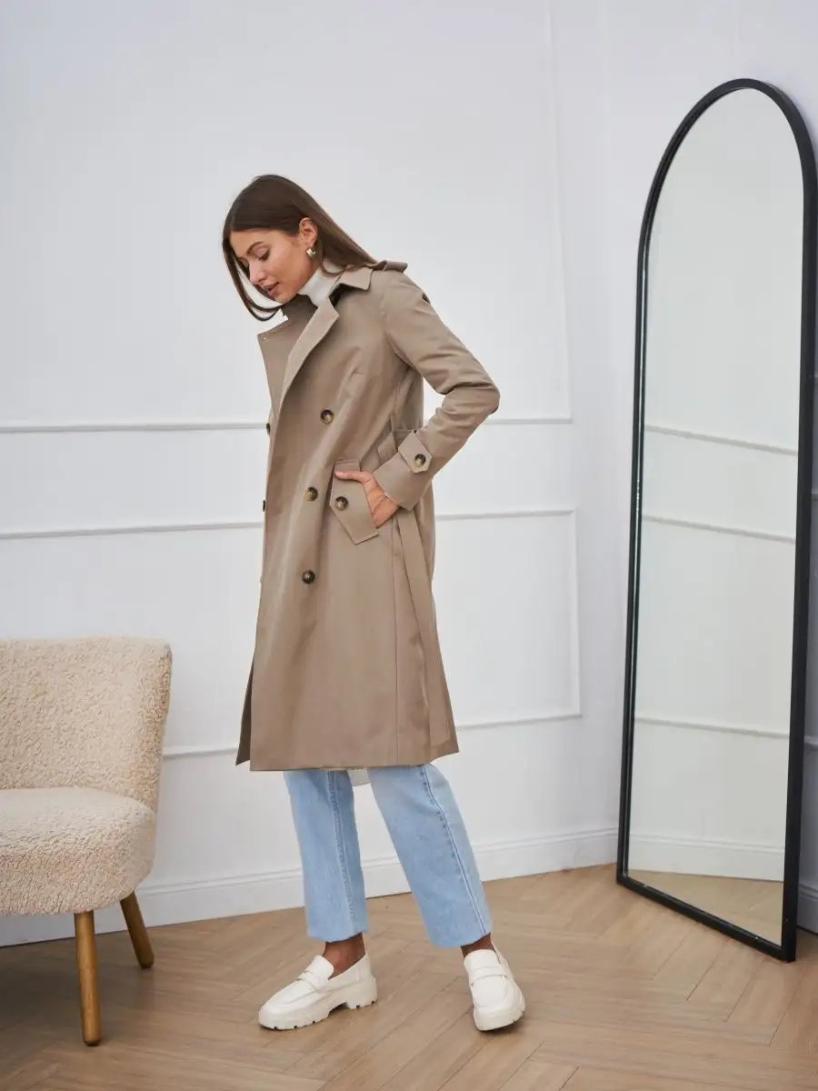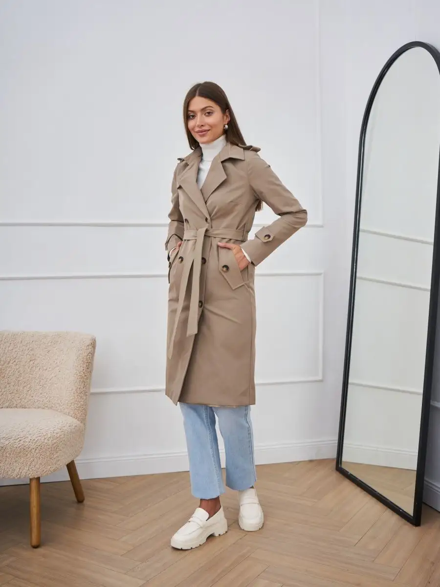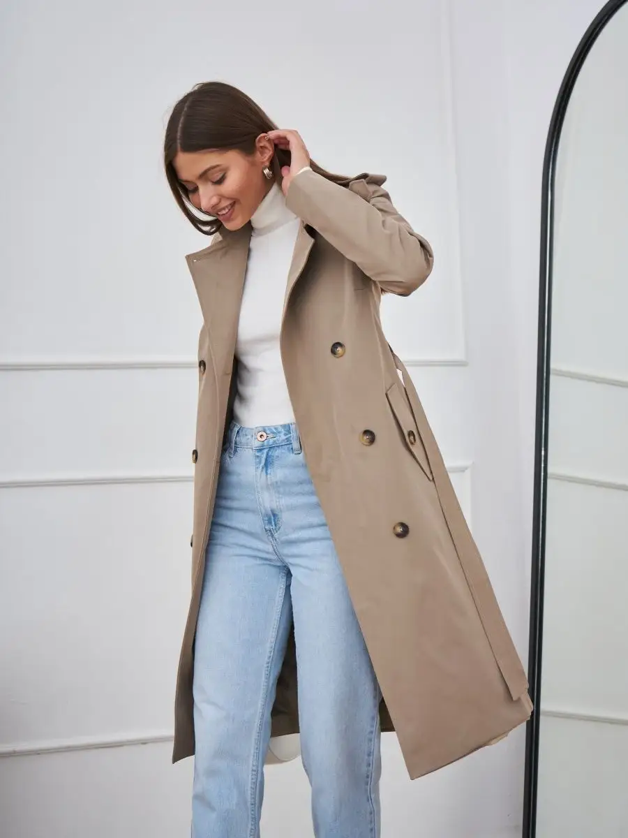 Плащ стильный весна длинный тренчкот демисезонный