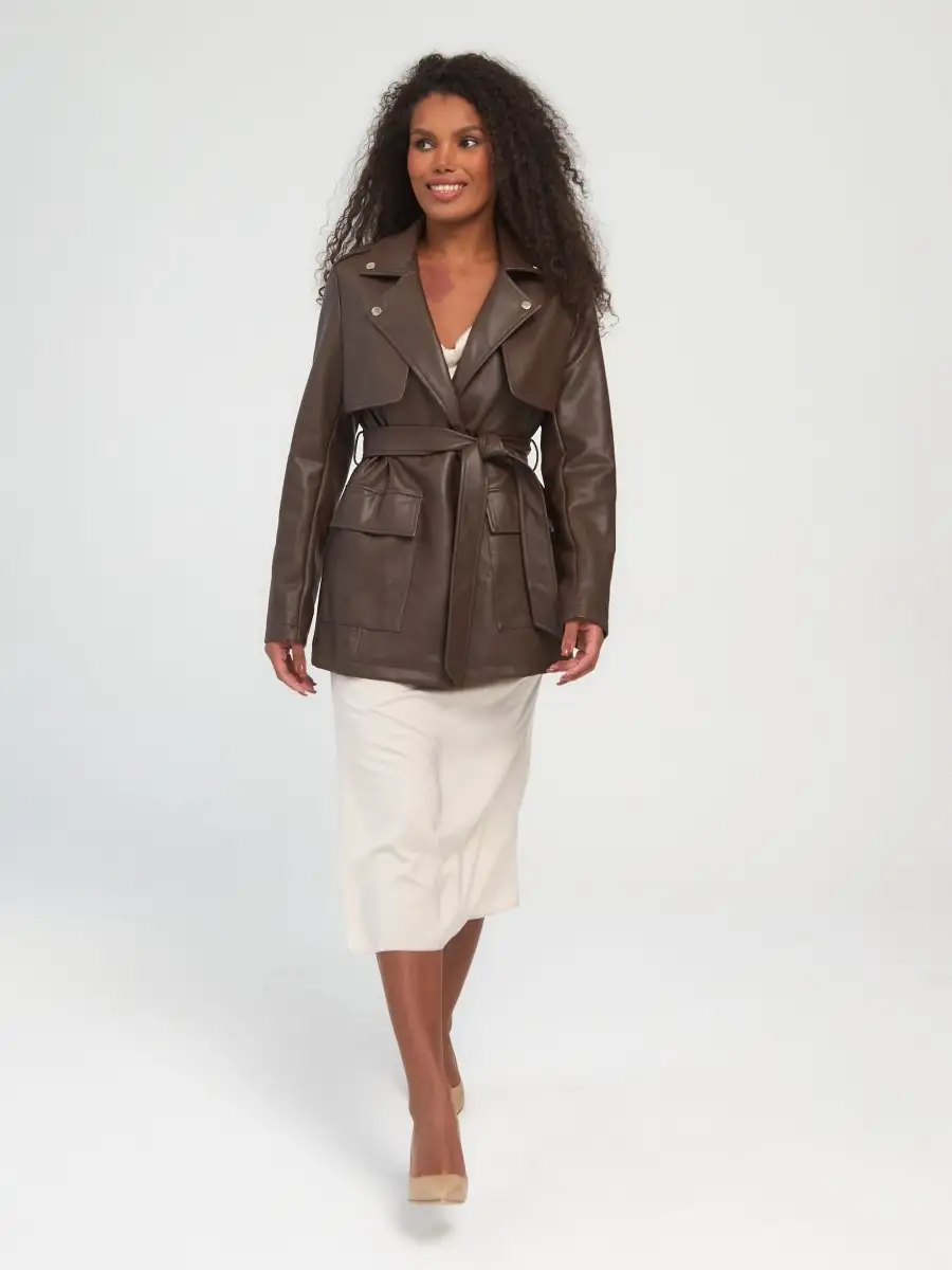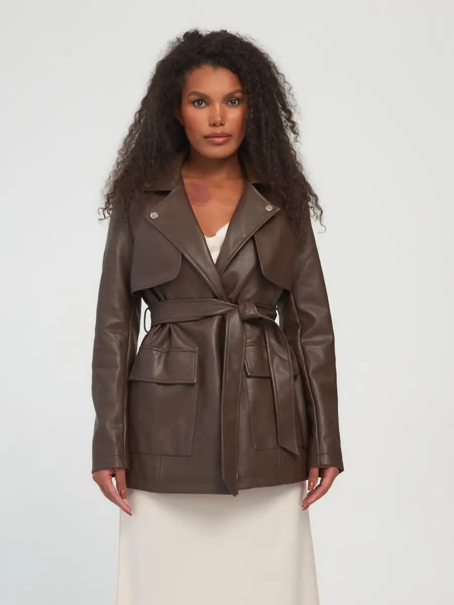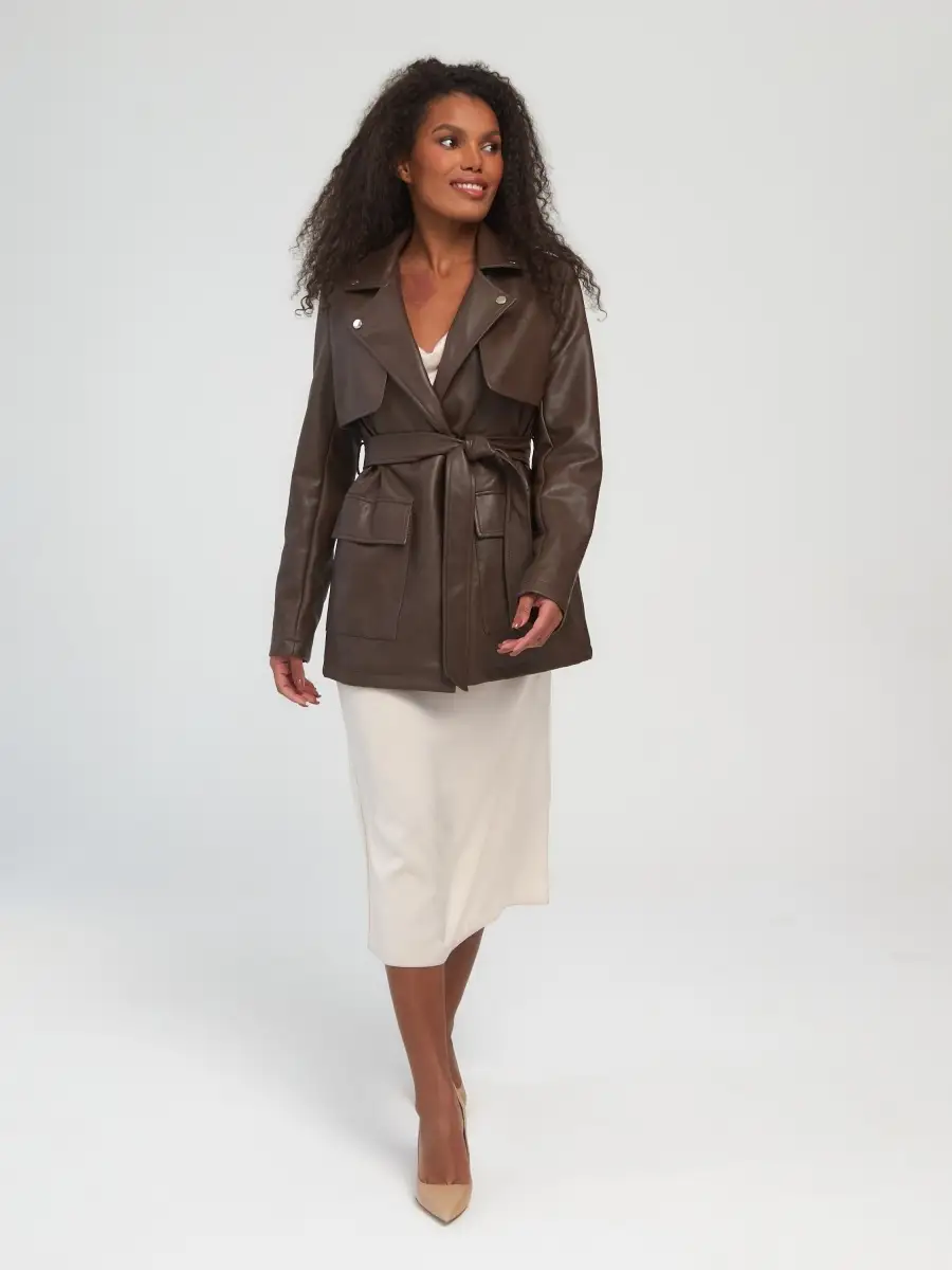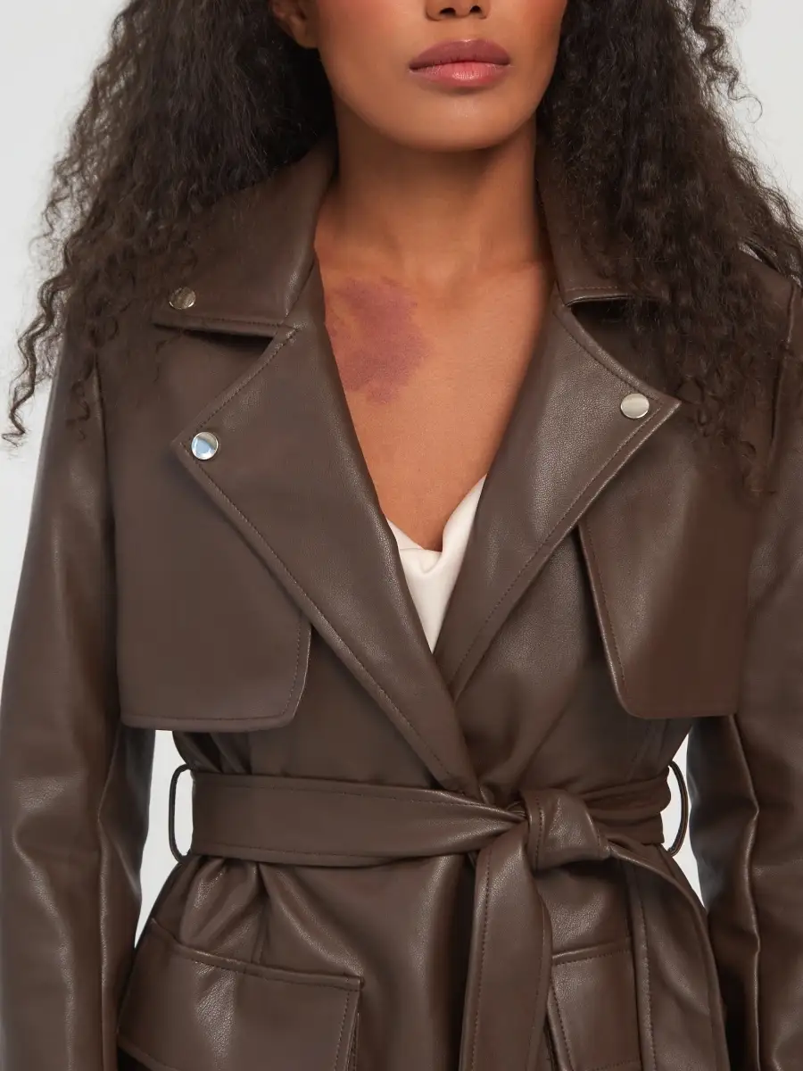 Описание: Базовая кожаная плащ куртка - незаменимый атрибут гардероба девушки. Укороченная модель тренча из эко кожи с карманами, дополненная кожаным ремнем по низу выглядит дерзко и в то же время эффектно, а наш размерный ряд идеально подойдет как для девушек, так и для подростков. Женская куртка из кожи прекрасно сочетается с любым стилем, подойдет на весну и лето станет отличным дополнением к любому образу- от повседневного в джинсах и кроссовках до романтичного. Плащ выполнен из мягкой, качественной эко-кожи. Кожаная куртка имеет длинный рукав, отложной воротник и множество дополнительных элементов. Нашу плащ на запах вы легко сможете носить как куртка демисезонная женская, косуха укороченная косуха для девочки, куртка кожаная пиджак из эко кожи. Желаем приятных Вам покупок.