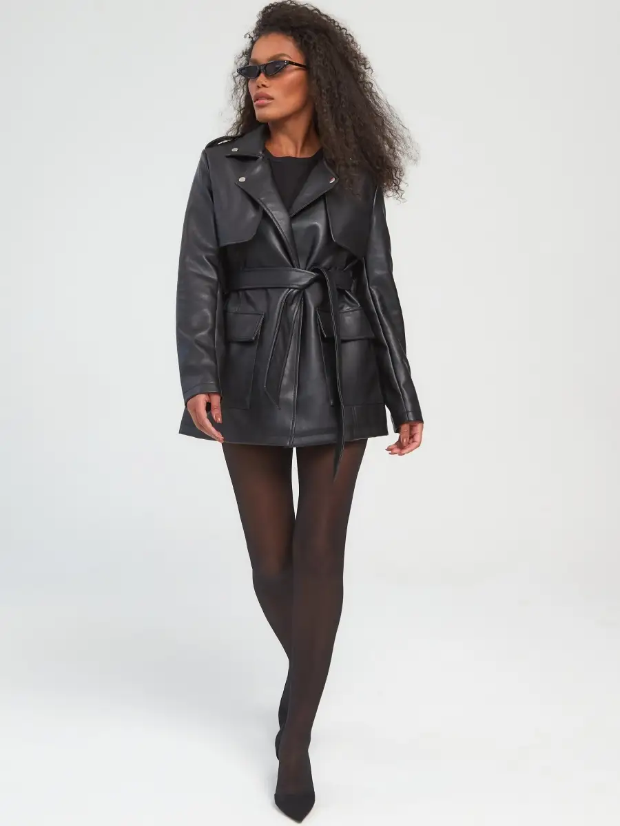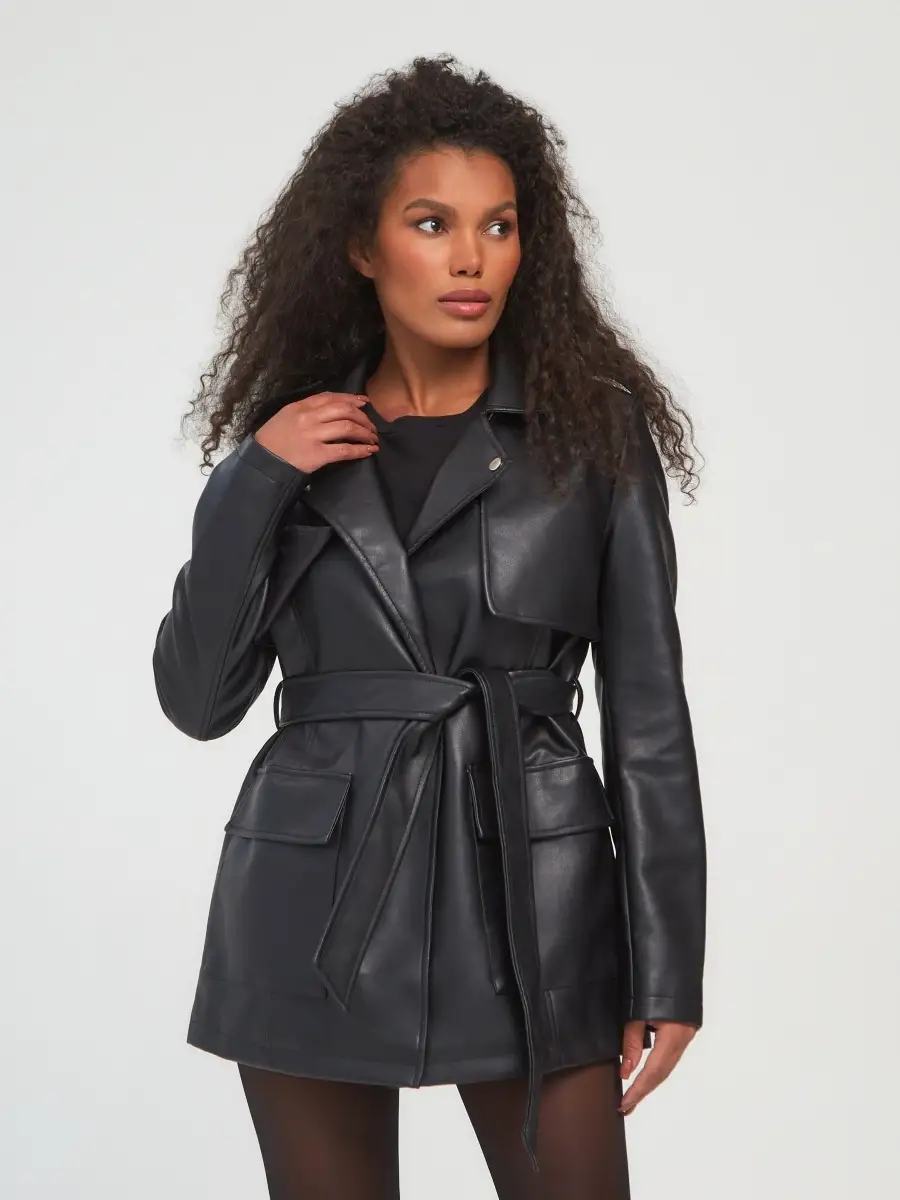 Описание: Базовая кожаная плащ куртка - незаменимый атрибут гардероба девушки. Укороченная модель тренча из эко кожи с карманами, дополненная кожаным ремнем по низу выглядит дерзко и в то же время эффектно, а наш размерный ряд идеально подойдет как для девушек, так и для подростков. Женская куртка из кожи прекрасно сочетается с любым стилем, подойдет на весну и лето станет отличным дополнением к любому образу- от повседневного в джинсах и кроссовках до романтичного. Плащ выполнен из мягкой, качественной эко-кожи. Кожаная куртка имеет длинный рукав, отложной воротник и множество дополнительных элементов. Нашу плащ на запах вы легко сможете носить как куртка демисезонная женская, косуха укороченная косуха для девочки, куртка кожаная пиджак из эко кожи. Желаем приятных Вам покупок.