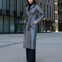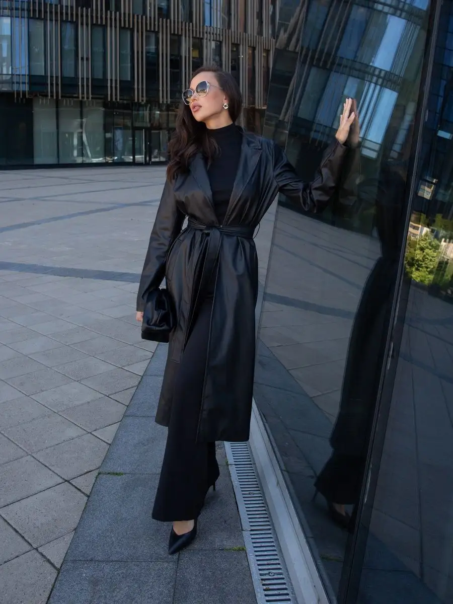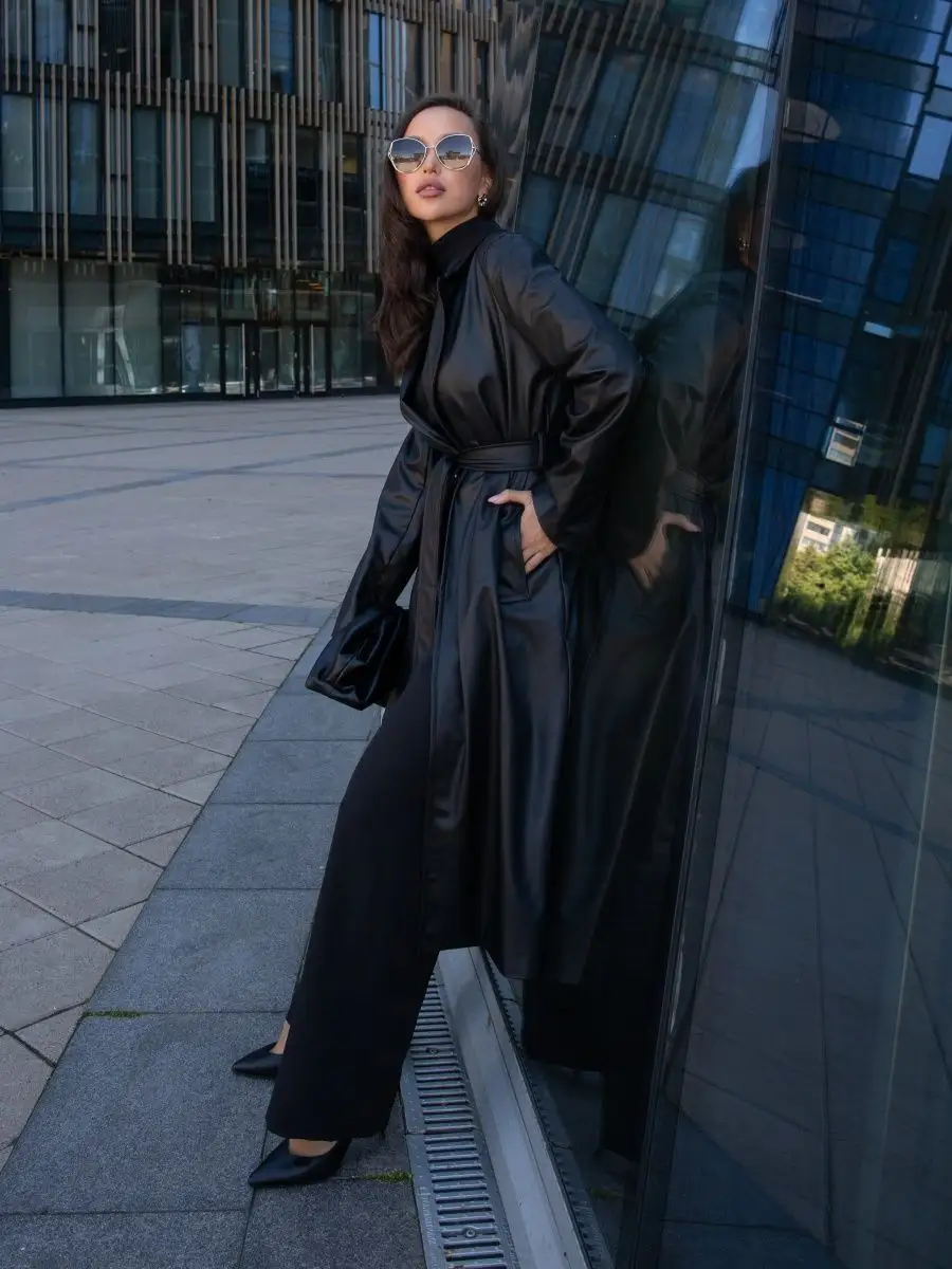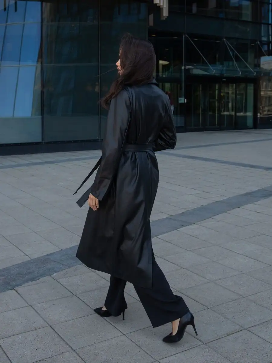 Плащ тренч кожаный длинный
