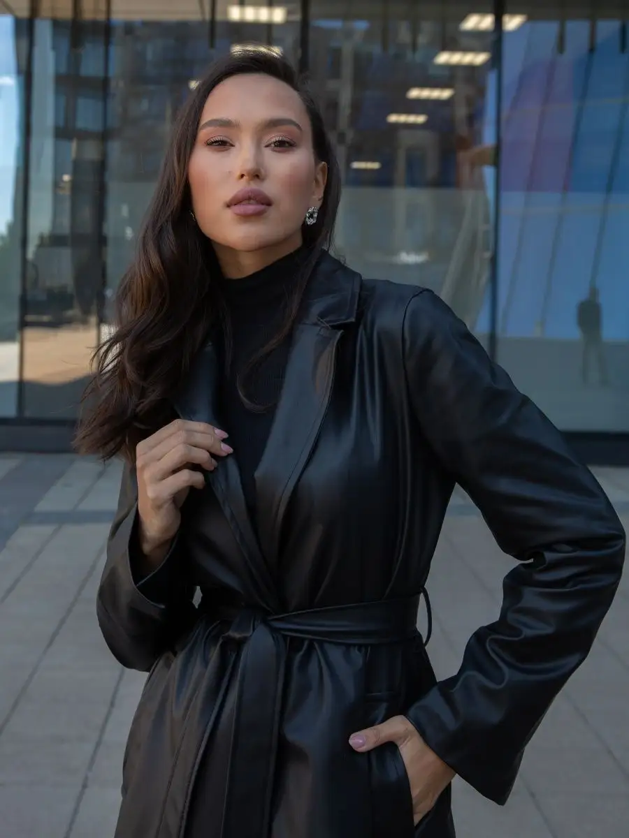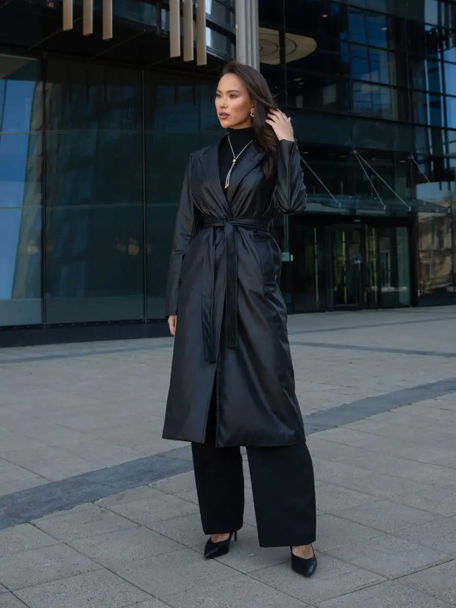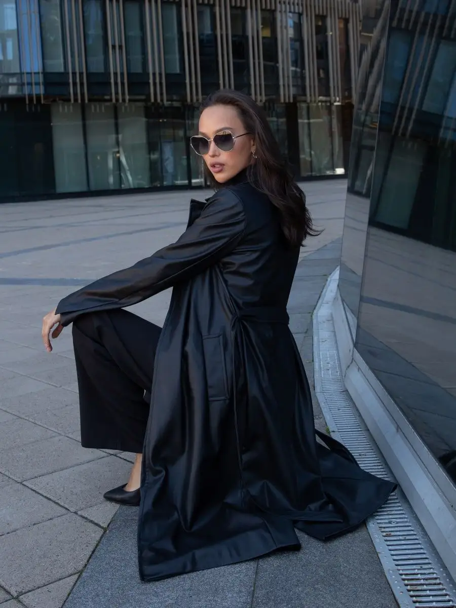 Описание: Длинный тренч классический на запах с поясом из экокожи станет украшением Вашего осеннего гардероба. Плащ кожаный женский прямого кроя подойдет для ветреной и дождливой погоды на осень, лето, весну. Температурный режим от 5 до 15 С. Удлиненный плащ на подкладке выполнен из качественной эко кожи (состав). Детали: боковые карманы, шлица сзади, пояс в тон в комплекте, текстильный подклад. Тренч не имеет пуговиц, благодаря этому он хорошо садится на любую фигуру и легко комбинируется с теплыми вещами. Если Вы искали подарок для женщины , подарок девушке жене маме сестре , подруге , то модный, современный, стильный женский кожаный тренчкот прекрасно для этого подойдет. Обратите внимание, что при создании образов для фото контента использована одежда нашего бренда (футболки, брюки, украшения). Рекомендуем посмотреть весь ассортимент наших товаров, нажав на картинку бренда. Почувствуйте, как комфортна верхняя одежда для женщин от бренда Katty Po.