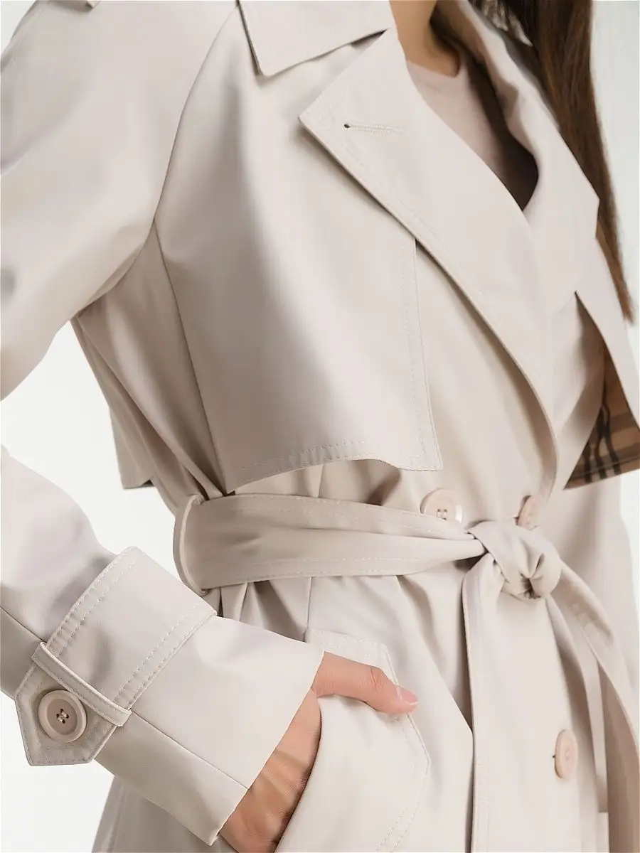 Описание: Свободный покрой классического тренча с поясом легко сочетается с любой одеждой и обувью. Удобный, комфортный, не стесняющий движения плащ, защитит от непогоды. Тренч выполнен из качественной, плотной, добротной и приятной на ощупь плащевой ткани. Отличный вариант для весенней или осенней прогулки. Двубортный плащ на весну имеет прорезные карманы. Пуговицы в тон, погоны, кокетка, манжеты и отложной воротник делают из тренчкота универсальную вещь, которая придется по вкусу каждой девушке. Подкладка ОДНОТОННАЯ, в цвет плаща.