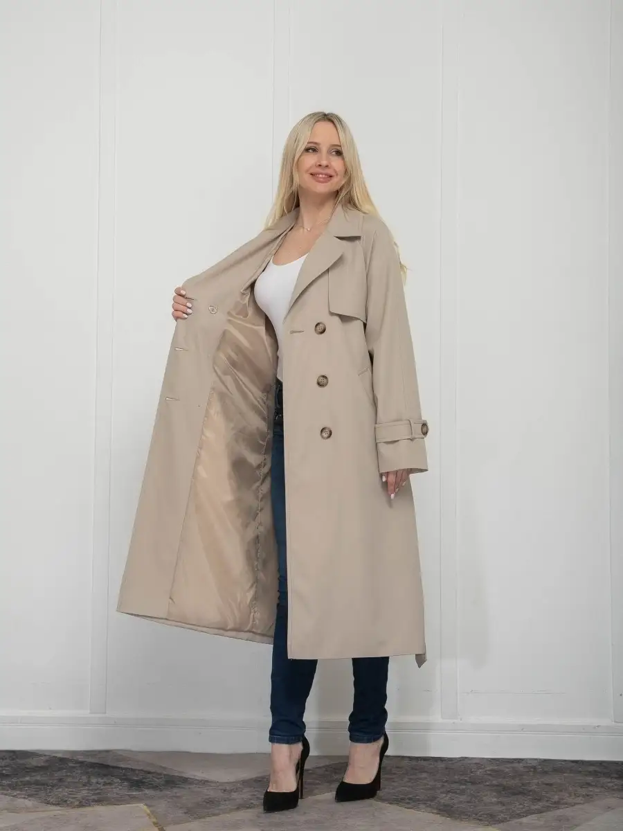 Описание: Тренчкот (трэнч) - хитовый элемент демисезонной верхней одежды. Женский плащ - это вещь, которая обязательно должна быть в гардеробе любой модницы. Что может быть лучше для теплых весенних дней, чем женский тренч? Вещь вне времени, всегда в тренде мировой моды, символ классического стиля и элегантности. Непромокаемый плащ на пуговицах длиной чуть выше колена отлично сочетается с костюмом, платьем, джинсами, юбкой или другой частью гардероба, особенно весной и осенью, а также в прохладные летние дни. Классические тренчи подойдут любой девушке вне зависимости от возраста, роста, размера, комплекции и выгодно подчеркнут достоинства фигуры. Погоны и паты придают дополнительную элегантность. Сезон - весна, лето. В комплект поставки входит пояс. Состав материалов, из которых изготовлен тренч: хлопок - 20%, полиамид - 80%. Уход: бережная стирка при 30 С, глажка при низкой температуре с паром.