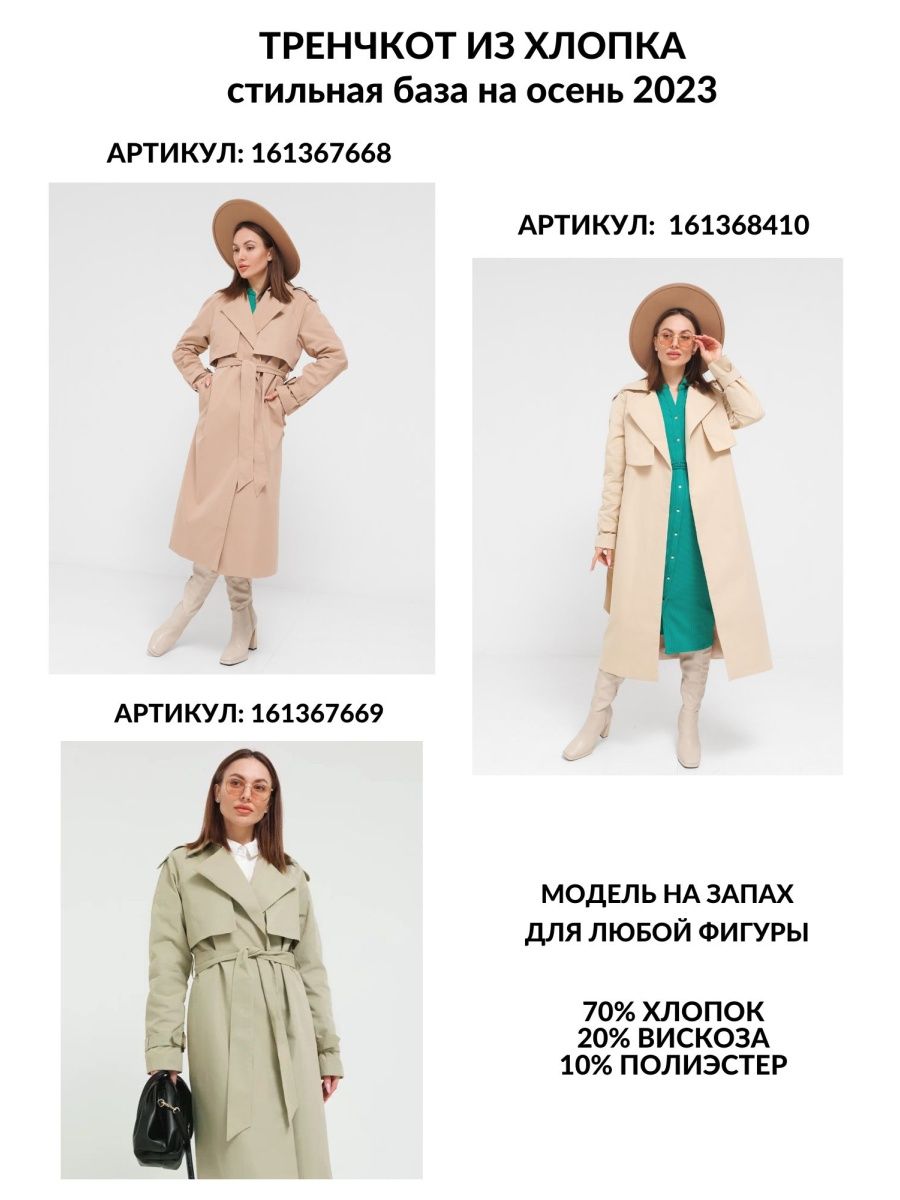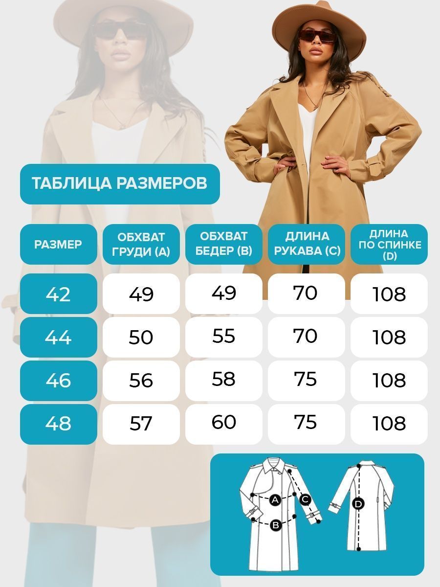 Описание: БОЛЬШЕМЕРИТ НА РАЗМЕР. Если вы хотите вещь оверсайз - заказывайте свой размер. А также, если к вам пришел плащ с браком или у плаща отсутствует пояс, пожалуйста, скажите сотруднику, что это брак. Так вы поможете нам бороться с недобросовестными покупателями и снизите риск того, что вам придет вещь с браком. Рекомендуем заказать плащ снова после того, как вы сдали предыдущий с пометкой "брак", вам приедет новый плащ. Ситуации с браком носят единичный характер, мы активно боремся с такими недобросовестными действиями других покупателей. Ищете стильную верхнюю одежду на весну лето 2023, которая будет одновременно красиво сочетаться и с деловым костюмом и прекрасно подойдет для повседневной носки? Тогда обратите внимание на новинки нашего бренда – плащ женский, который не оставит вас равнодушной. Длинный плащ тренчкот - настоящая находка для девушек и женщин, которые следят за модой и хотят выглядеть современно и стильно. Шикарный женский плащ от CITY BRAND очень популярен и универсален, Вы можете носить его не только на работу или «на выход», но и на прогулку на природе. Этот классический демисезонный тренч - отличный выбор для тех, кто ищет оригинальный и необычный предмет гардероба на сезон весна-осень. Элегантный двубортный женский плащ летний с боковыми карманами украсит любой образ и защитит от дождя и ветра. Трендовая модель пальто представлена в цветах: светло бежевый (молочный), бежевый, оливковый (хаки). Базовый весенний плащ вытягивает силуэт, стройнит, поэтому идеально подойдёт как для девушек высокого роста, так и невысоких. Он прекрасно сочетается с пиджаком жакетом или костюмом в офис и станет отличным дополнением для вашего нарядного образа. Стильный плащ тренч оверсайз прекрасно подойдет Вам на каждый день. Плащи и тренчкоты CITY BRAND – модные базовые женские вещи сезона весна осень в стиле Casual, замечательно смотрятся как в классическом сочетании с юбкой и рубашкой, как вечерняя одежда с платьем или брюками, так и на каждый день с джинсами и кофтой. Дополнит спортивный образ. Их могут носить молодые девушки и взрослые женщины. Отлично подойдет для девочек подростков в школу. Весенний плащ подойдёт беременным женщинам, а кормящим мамам будет удобно быстро покормить грудного ребёнка на прогулке.
