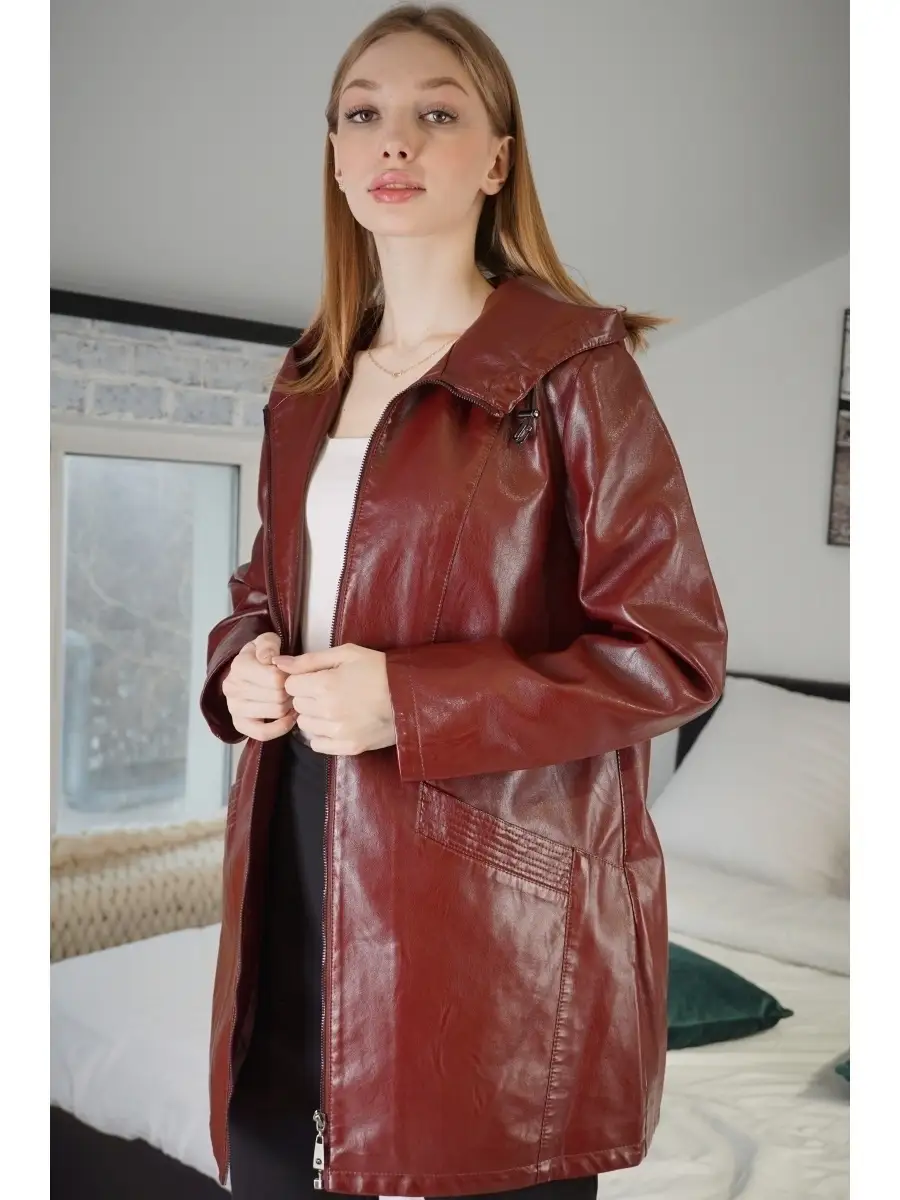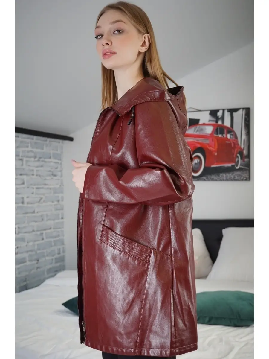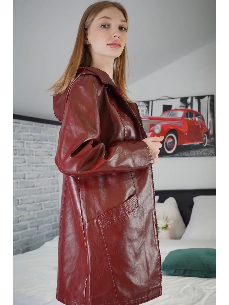 Плащ Женский Кожаный плащ Куртка кожаная Куртка длинная