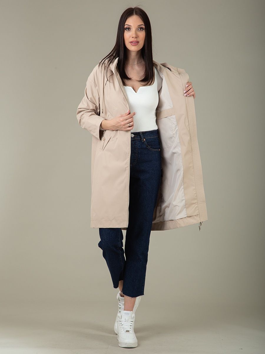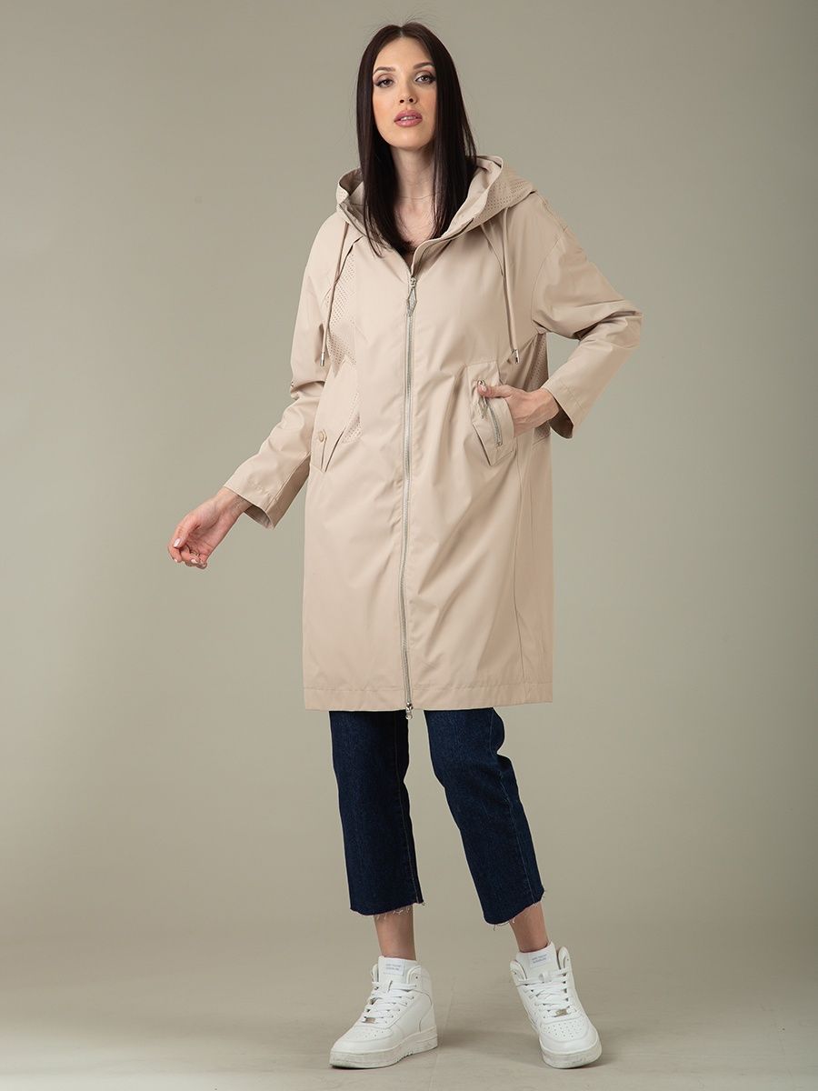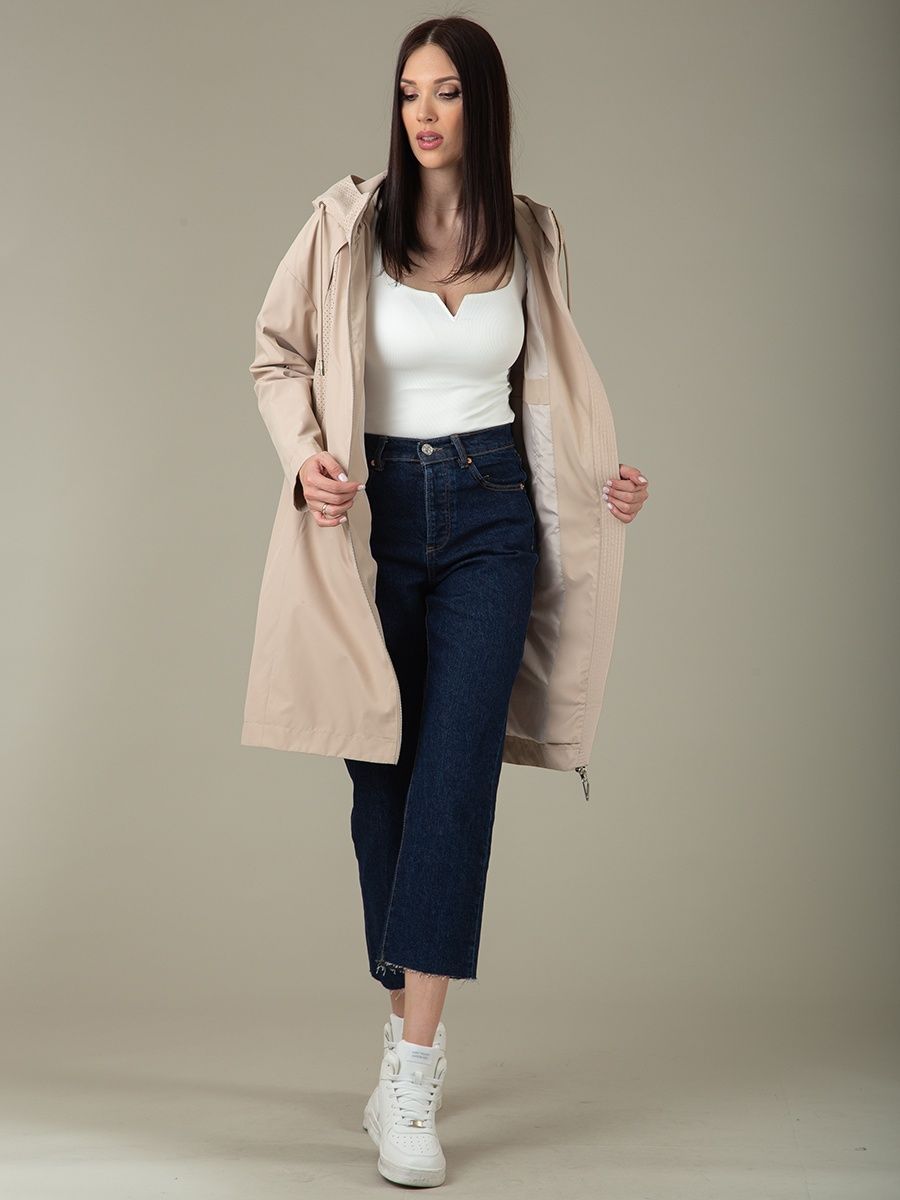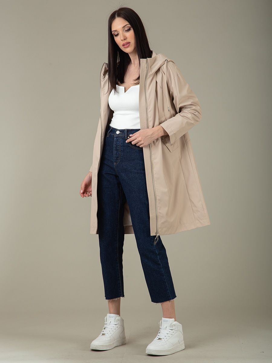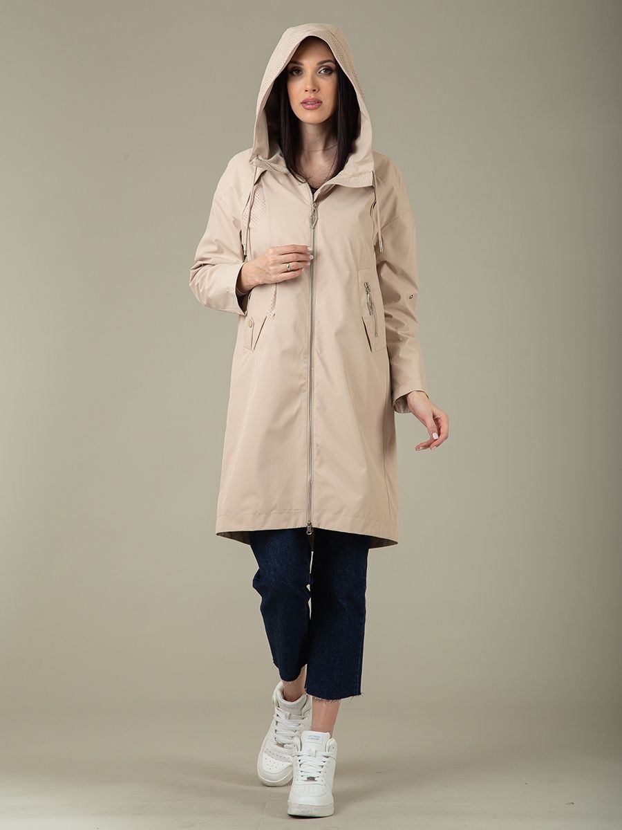 Плащ женский осень длинный тренч демисезонный с капюшоном