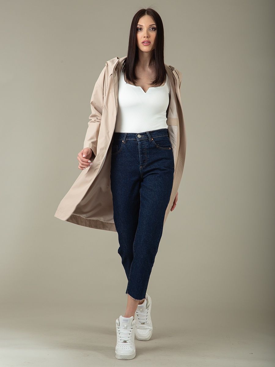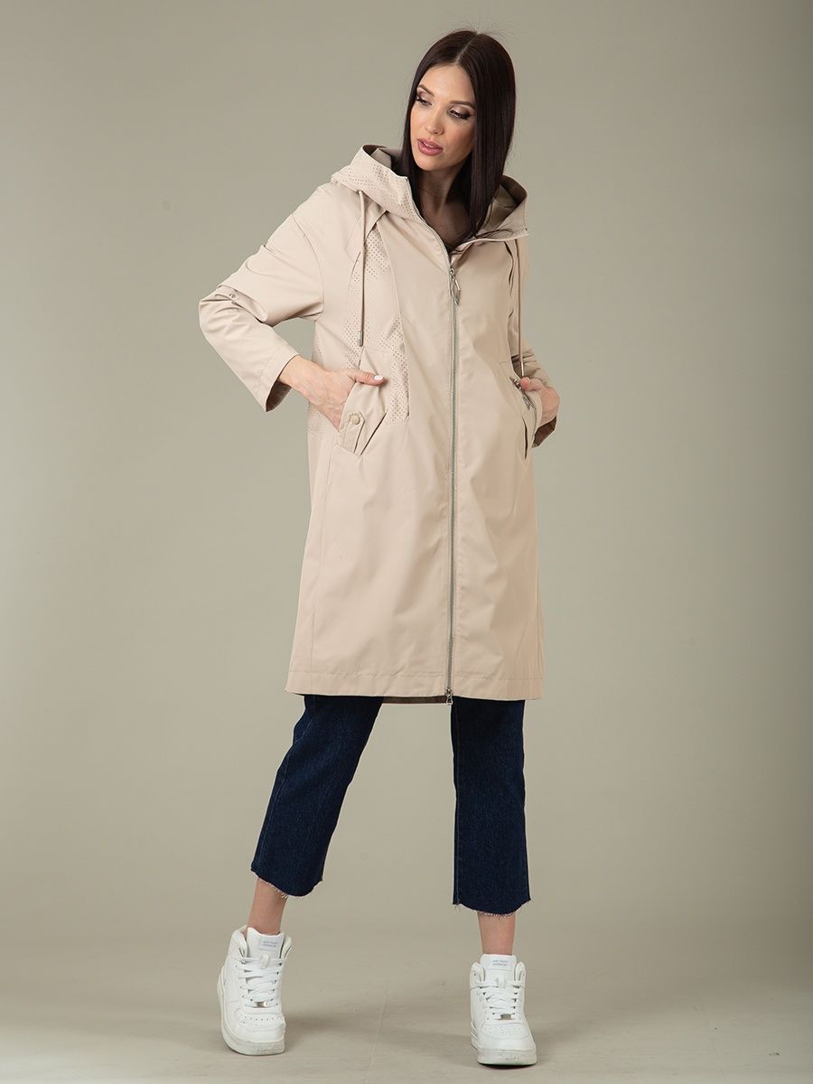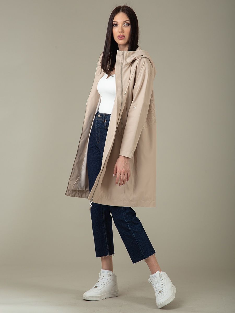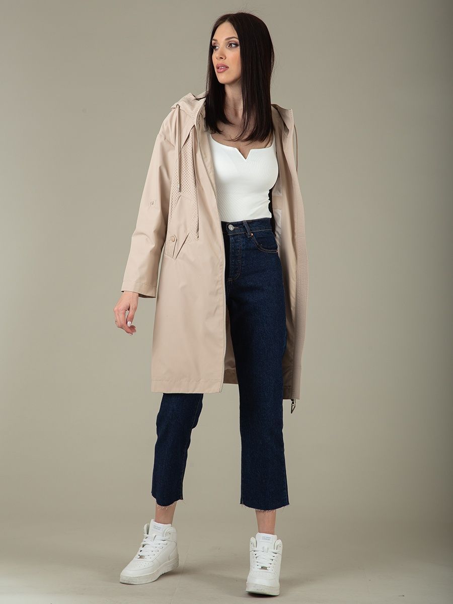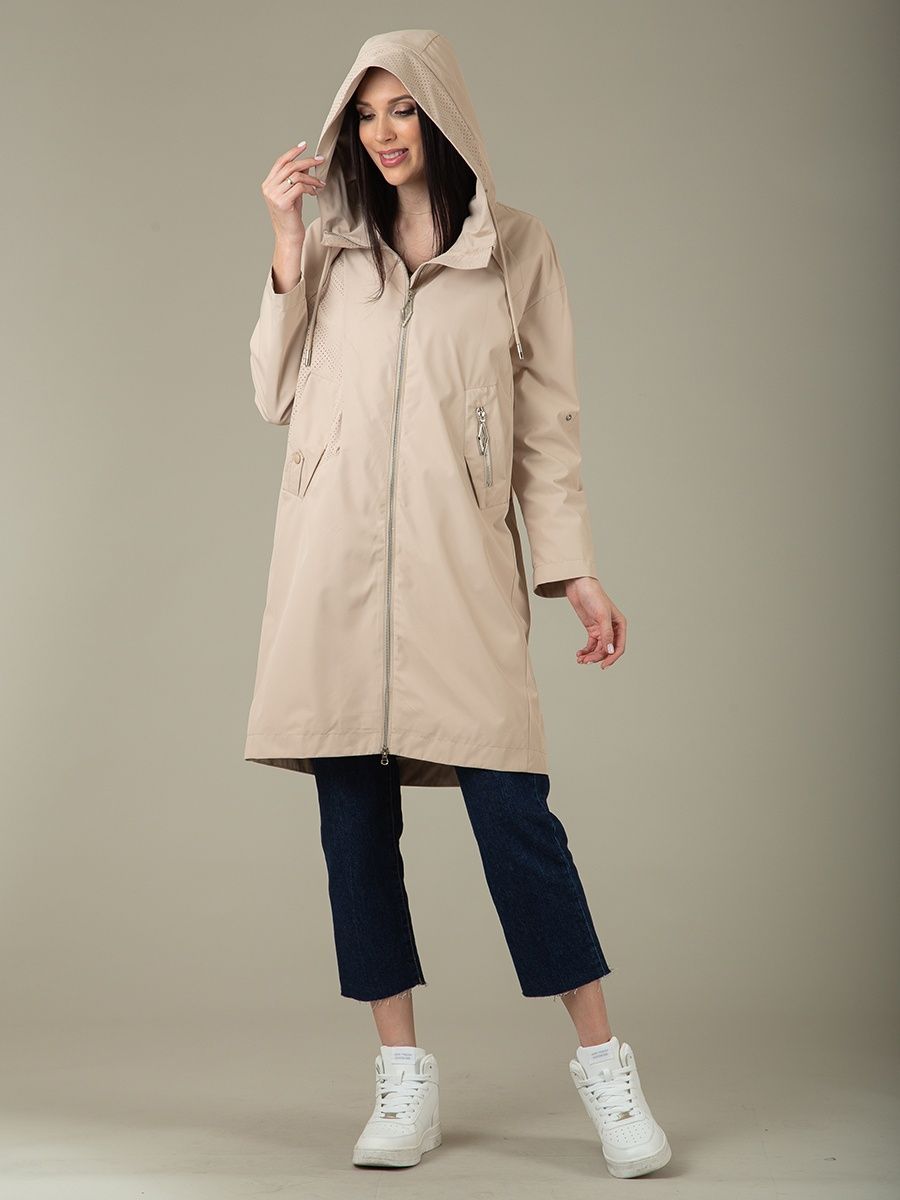 Плащ женский осень длинный тренч демисезонный с капюшоном