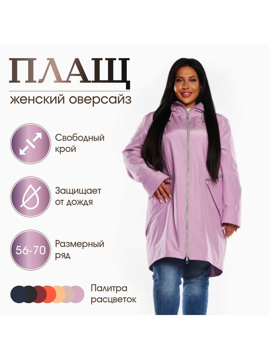 Описание: Плащ женский демисезонный на молнии, длинные рукава. Куртка осенняя женская от непогоды защитит удобный капюшон без опушки и дышащая ткань с гладким рисунком. Подойдет для офиса, прогулок, можно использовать как повседневную одежду для взрослых и молодых женщин, идеально для беременных, так как фасон оверсайз. Демисезонная куртка женская ниже колена сочетается с классическим и спортивным стилем, хорошо смотреться на высоких и на невысоких женщинах. Большие размеры до 72. Рассчитан на температуру до +15С градусов. Утеплителя нет, изделие водоотталкивающее, не промокает под дождем, сохраняет характеристики более 10 лет. Длина изделия 97 см. Рекомендуем бережную стирку. Рост девушки на фотографии 170.