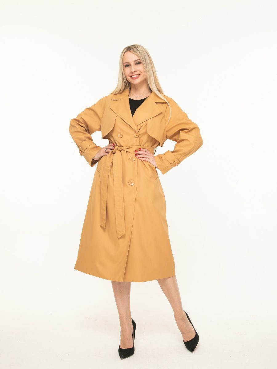 Описание: Тренчкот (трэнч) - хитовый элемент демисезонной верхней одежды. Женский плащ - это вещь, которая обязательно должна быть в гардеробе любой модницы. Что может быть лучше для теплых весенних дней, чем женский тренч? Вещь вне времени, всегда в тренде мировой моды, символ классического стиля и элегантности. Непромокаемый плащ на пуговицах длиной чуть выше колена отлично сочетается с костюмом, платьем, джинсами, юбкой или другой частью гардероба, особенно весной и осенью, а также в прохладные летние дни. Классические тренчи подойдут любой девушке вне зависимости от возраста, роста, размера, комплекции и выгодно подчеркнут достоинства фигуры. Погоны и паты придают дополнительную элегантность. Сезон - весна, лето. В комплект поставки входит пояс. Состав материалов, из которых изготовлен тренч: хлопок - 20%, полиамид - 80%. Уход: бережная стирка при 30 С, глажка при низкой температуре с паром.
