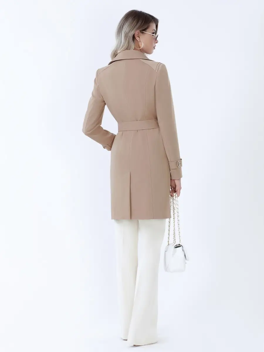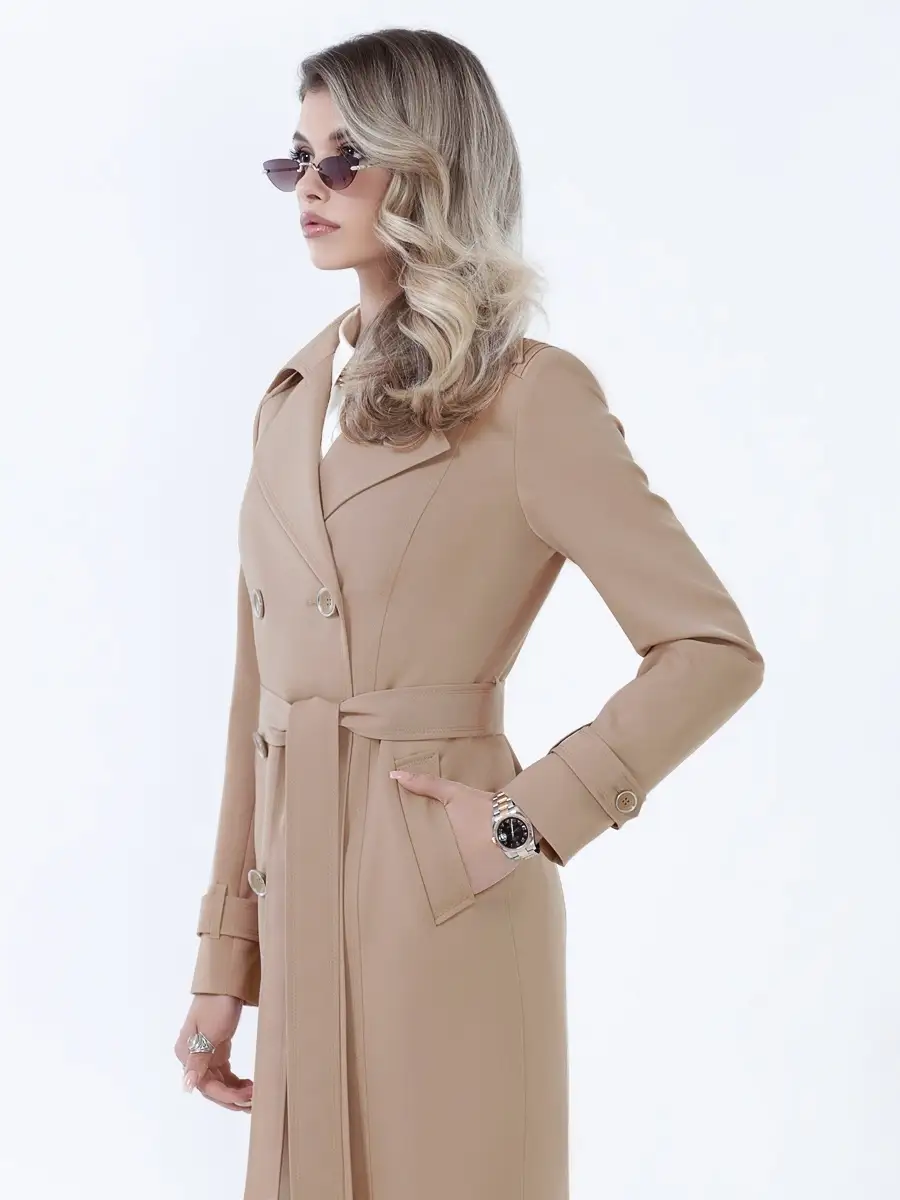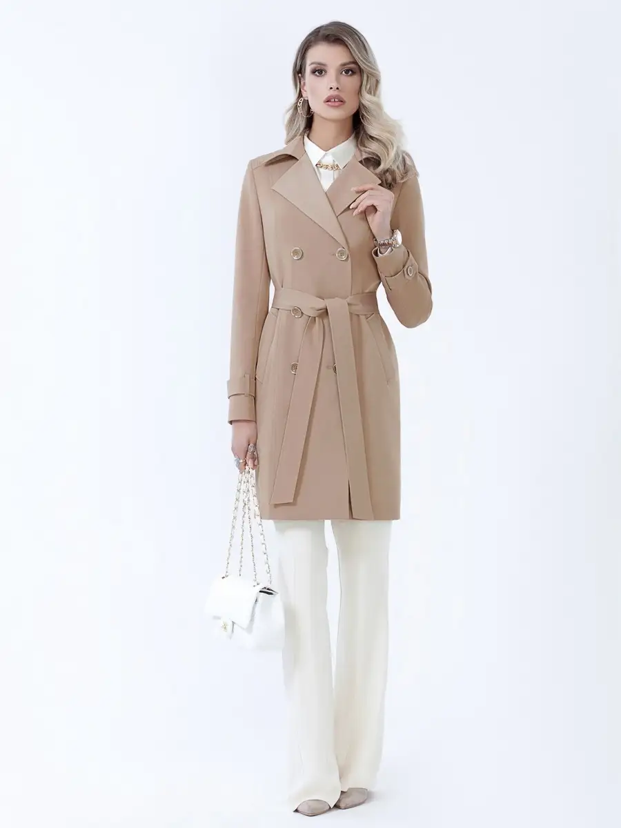 Описание: Классический плащ-тренч с четкими линиями кроя. Модель включает все традиционные атрибуты тренчкота - двубортность, паты на рукавах, кокетки - всё призвано поддержать стиль! Полуприлегающий силуэт, актуальный английский воротник, карманы - листочки, удобная застёжка на пуговицы. Пояс в комплекте. Классический тренч просто необходим в современном базовом гардеробе!