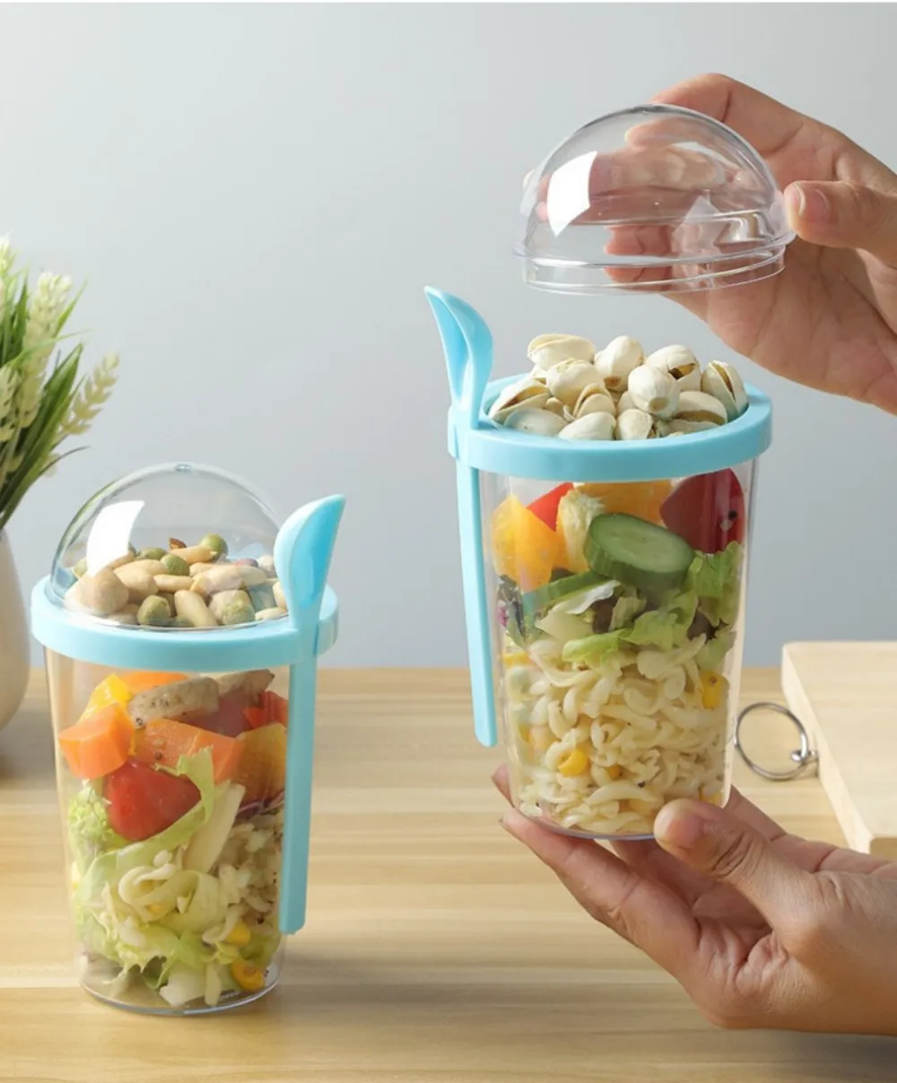 Пластиковые чашки йогурта и злаков для завтрака уменьшенные жировые овощные и фруктовые салатные чашки с вилкой и ложкой
