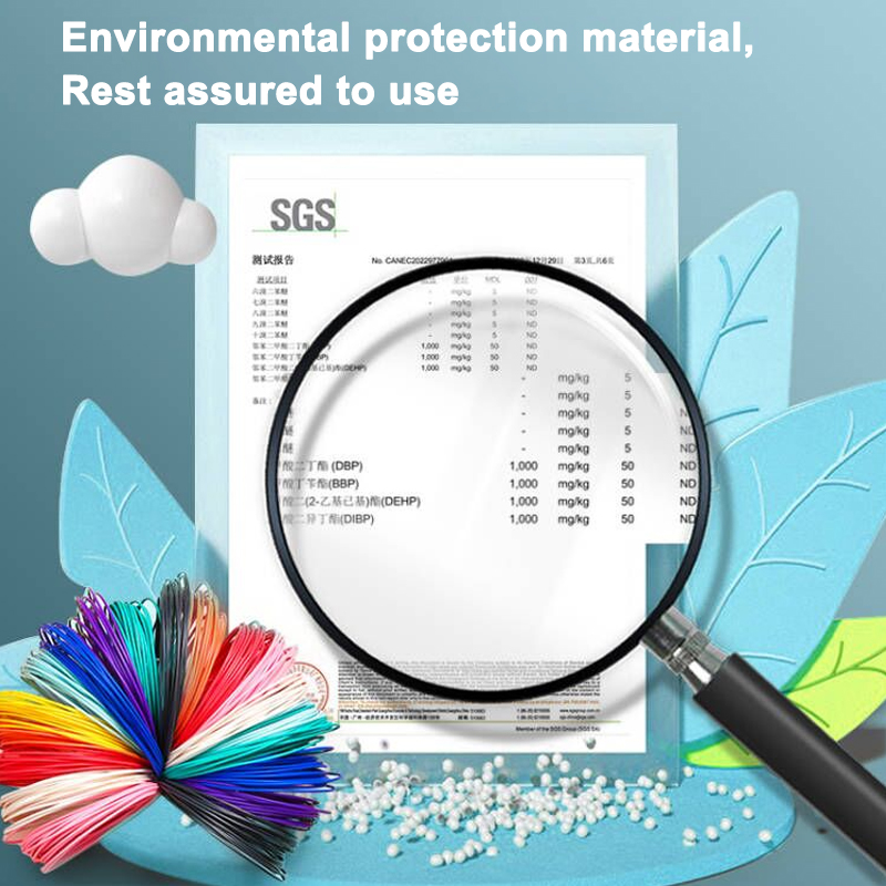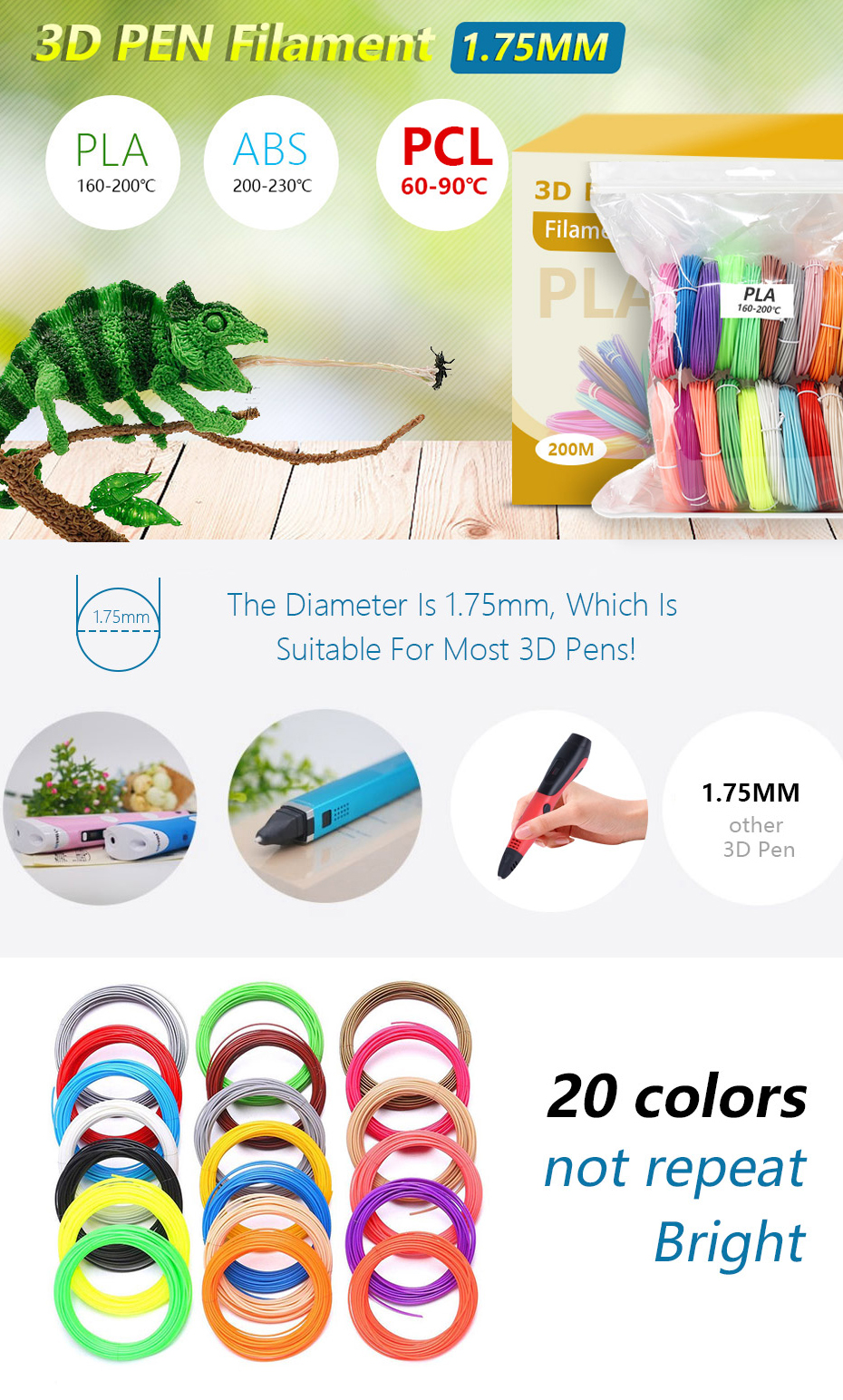 Пла:Температура плавления составляет около 150 ℃, также является биоразлагаемым материалом, нагрев будет производить запах, подверженный заглушке пера, отсутствие прочности, легко ломается, охлаждение не легко сжимается, яркий цвет, подходит для взрослых начинающих.