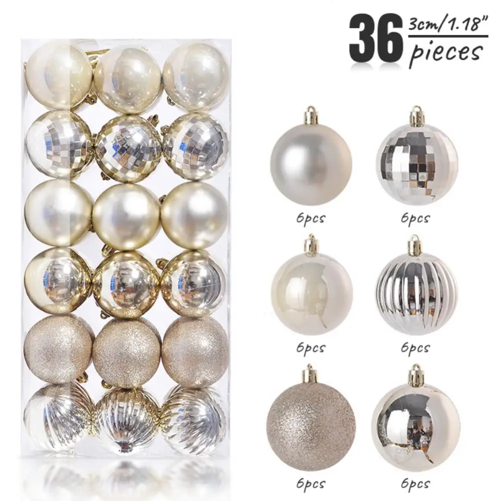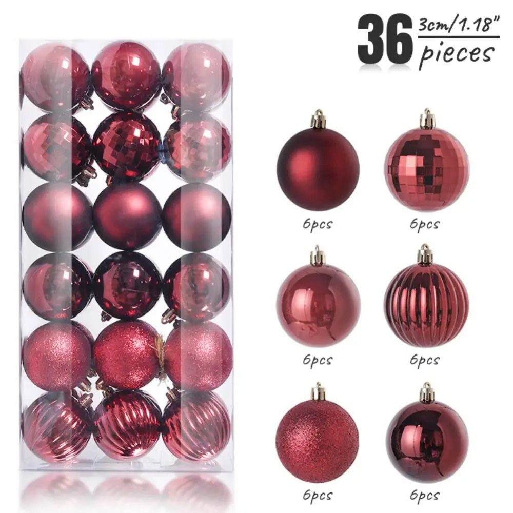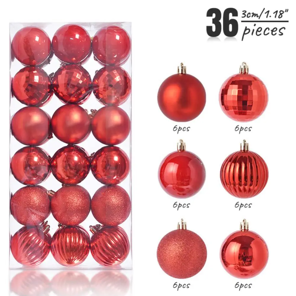 Пластиковые шарики для рождественской елки, 3 см, 36 шт
